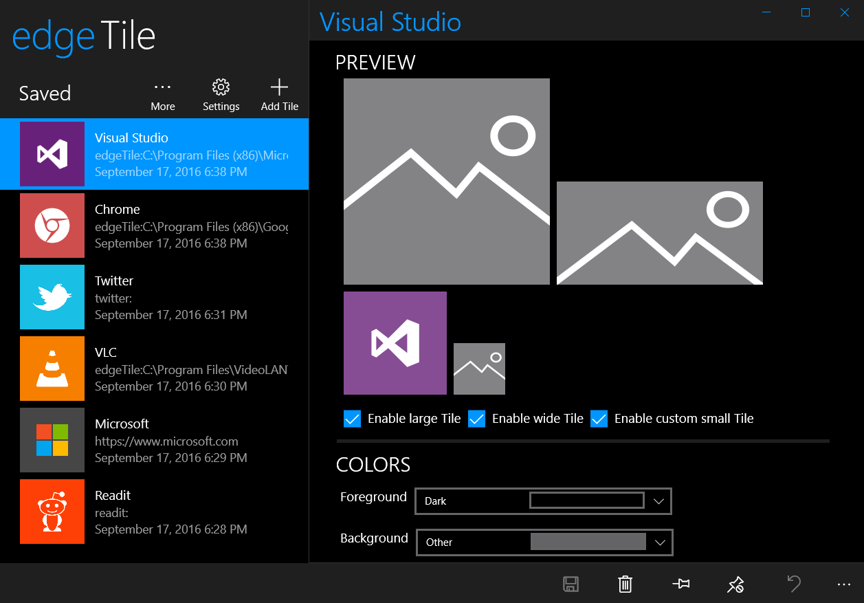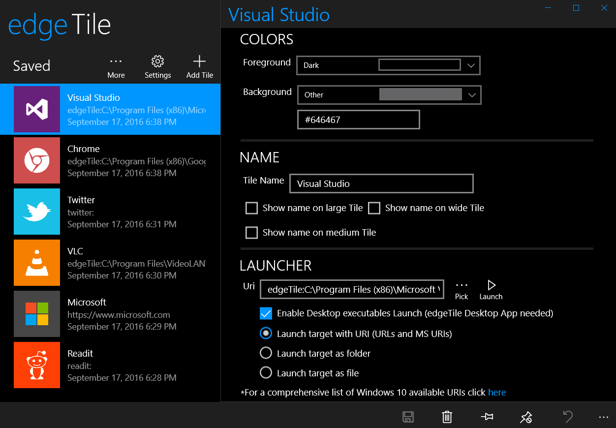 edgeTile can help you build and pin amazing custom tiles which link you directly to your news, shop, productivity, entertainment or whichever kind of app and website you use most often in your own fashionable way.