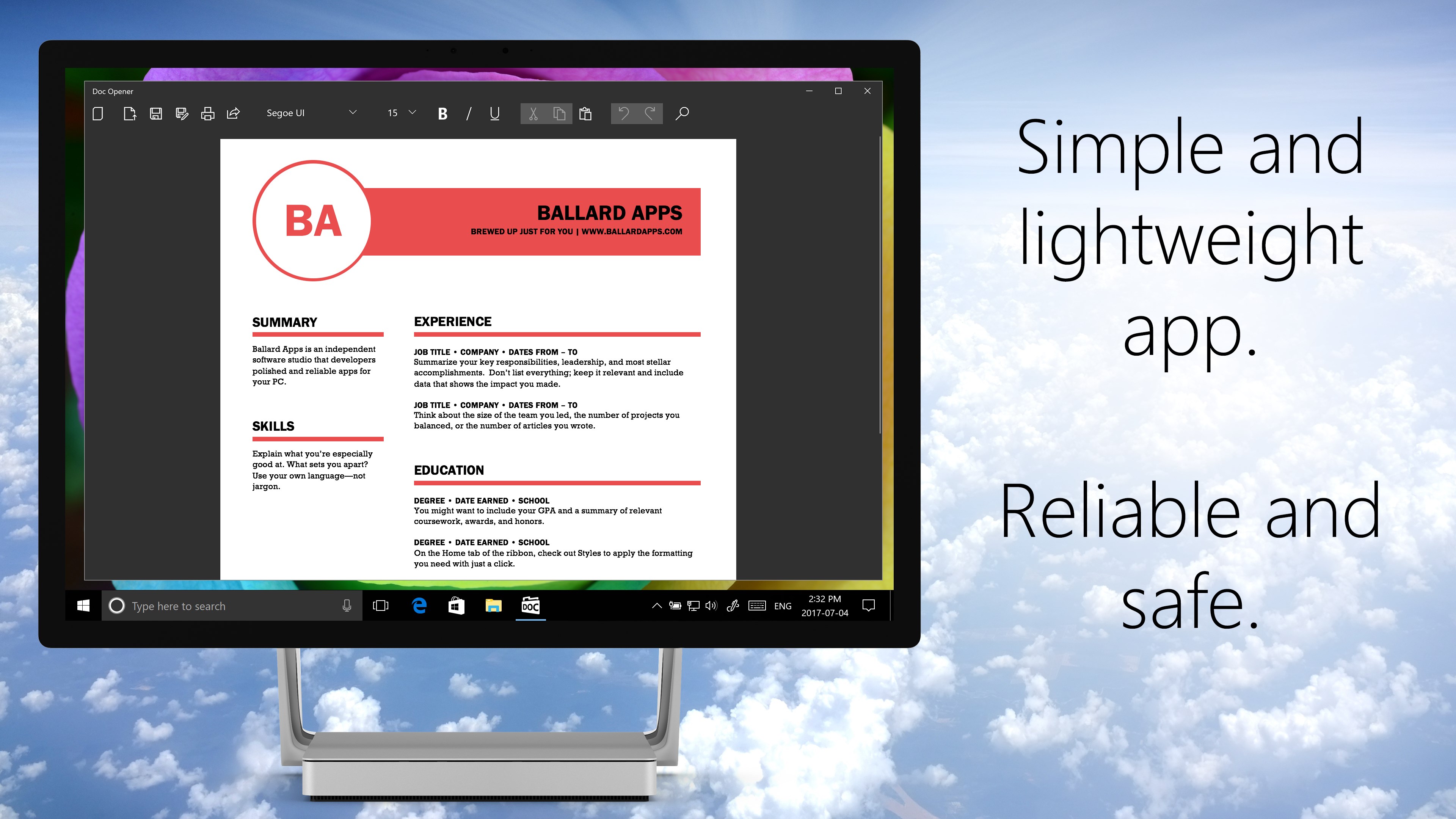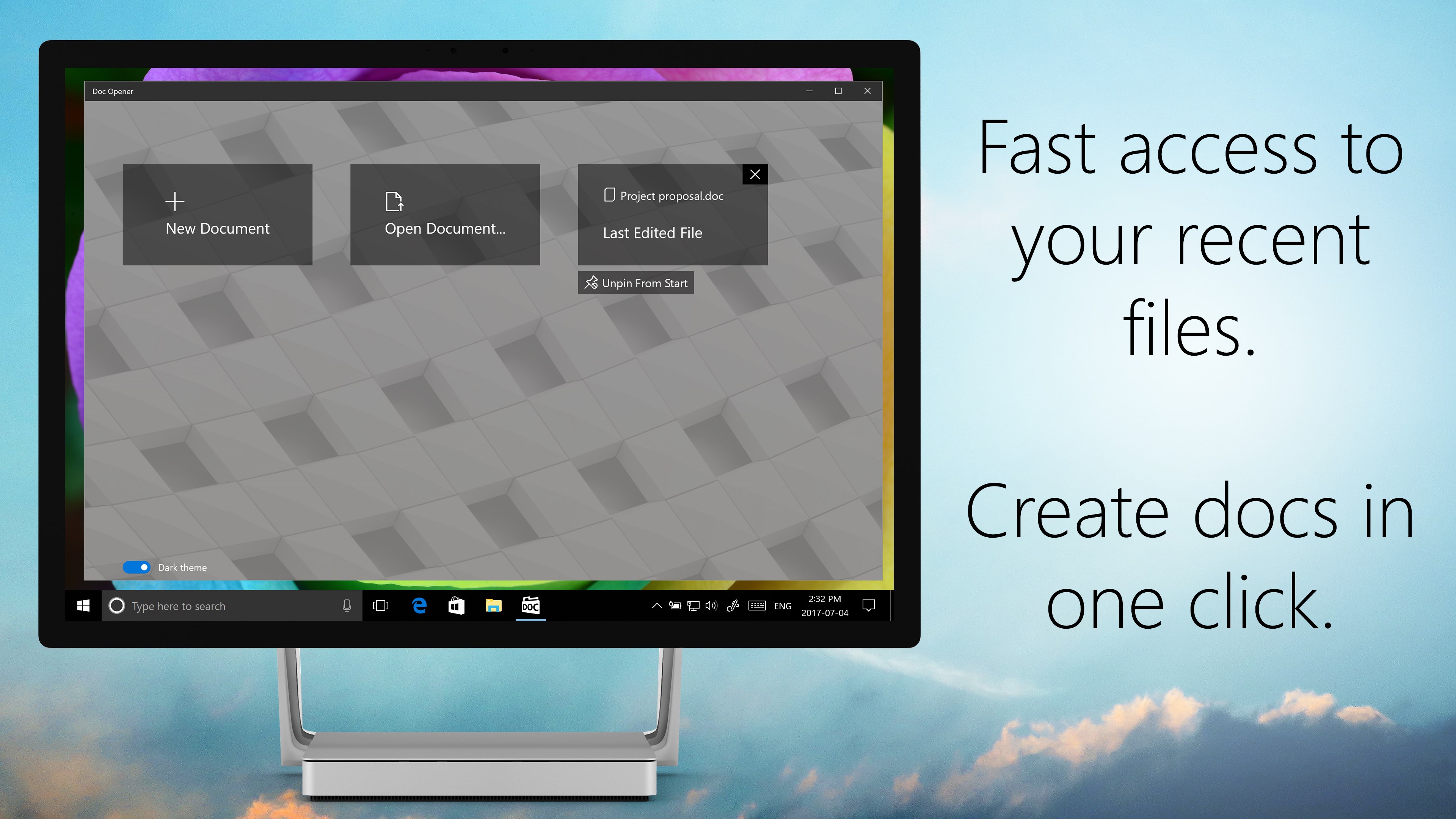 This lightweight app is built for speed - it opens your docs quickly and gets out of your way. Doc Opener includes simple editing tools for working on your docs.