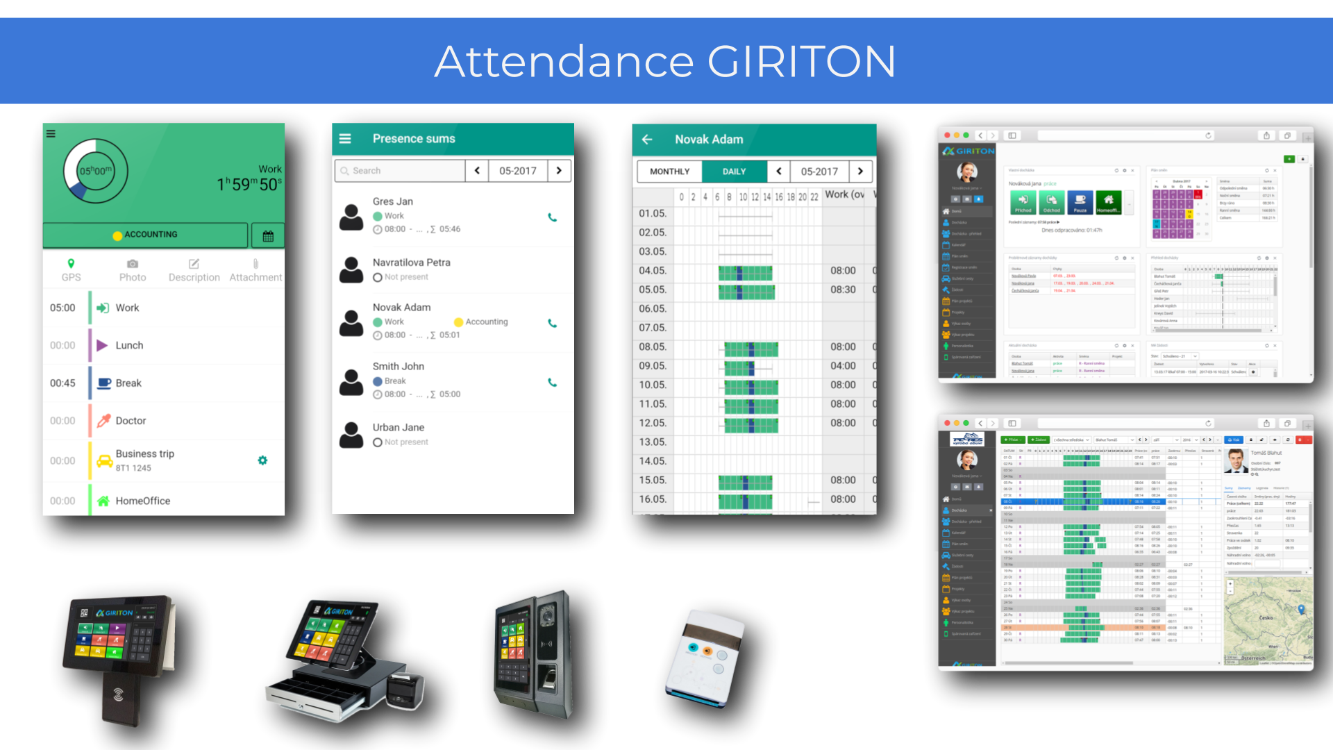 My Attendance GIRITON makes it easy to insert and evaluate employees' attendance, record business trips in real time, share shift plans, submit and approve attendance requests and measure the work performed on individual projects.