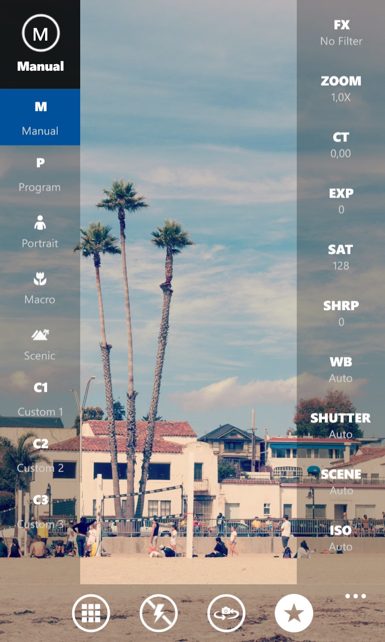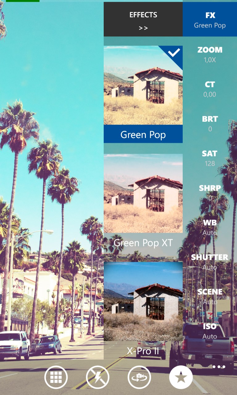 OneShot is a professional mobile camera app and offers high quality filters in a lovely user interface that is overlaid on top of your viewfinder. Apply a change, such as a filter, and you can see the difference on your screen in real time.