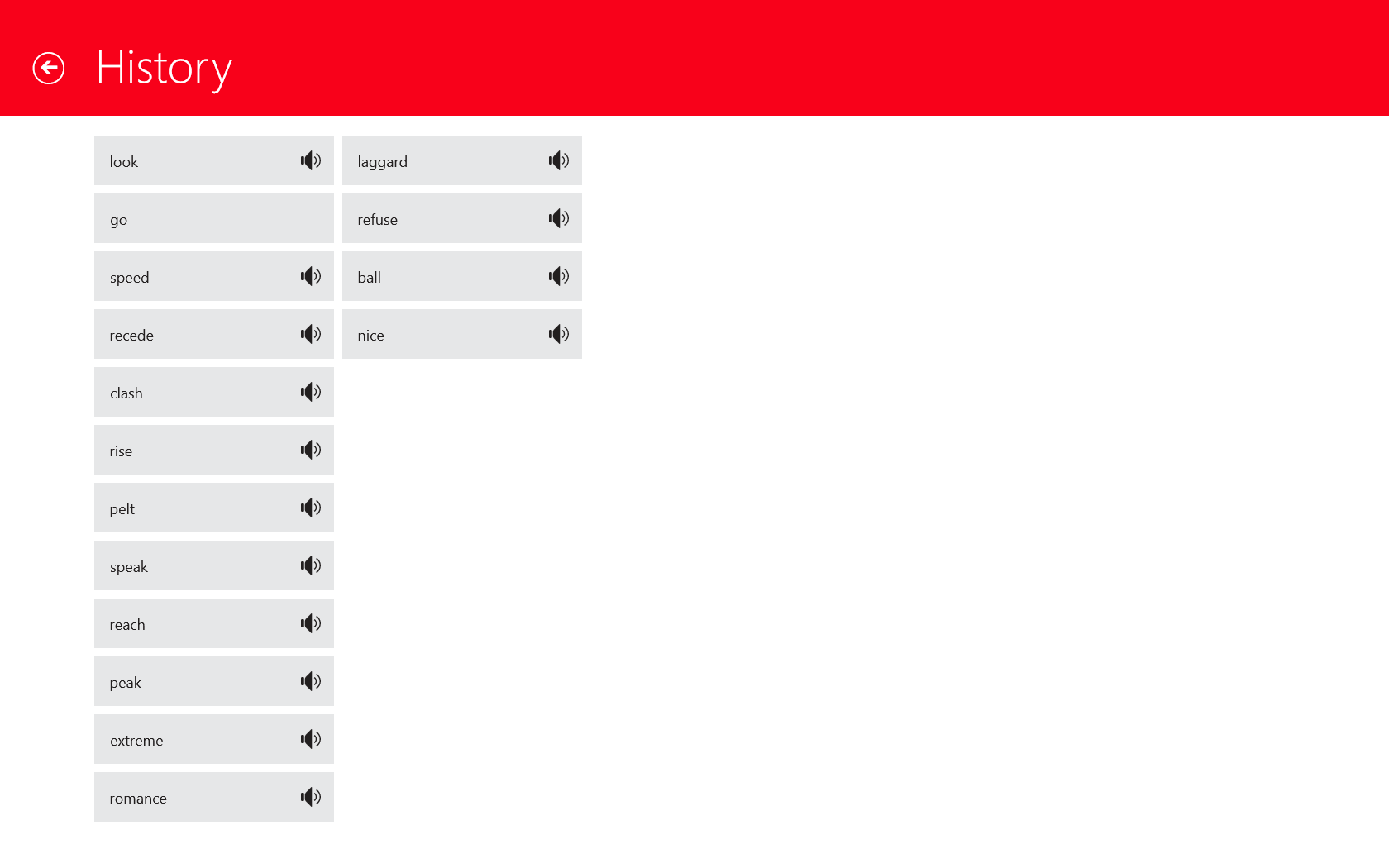 • Search history. While you are using the dictionary, it saves all looked up and viewed words/phrases in the history.
