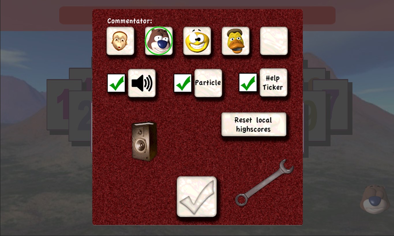 Various backgroundsVarious cartoon figures as commentators (on/off)Highscores