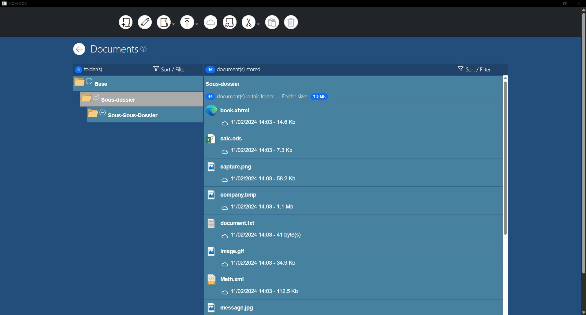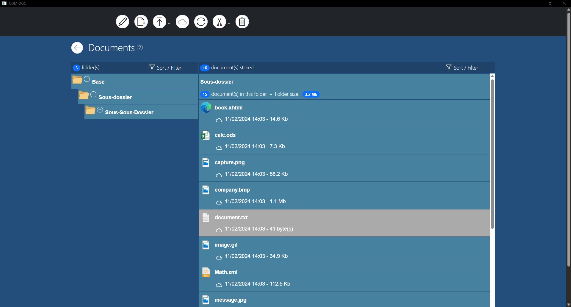 COM-DOC is an application that allows you to archive digital documents in a folder tree.