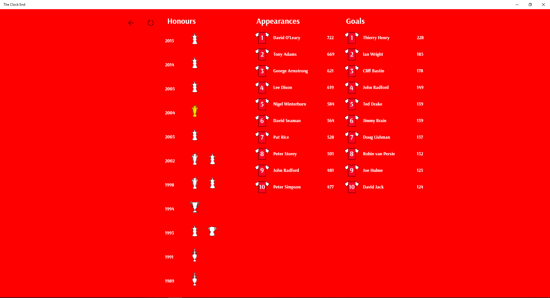 Live Tile ClockArsenal Stats