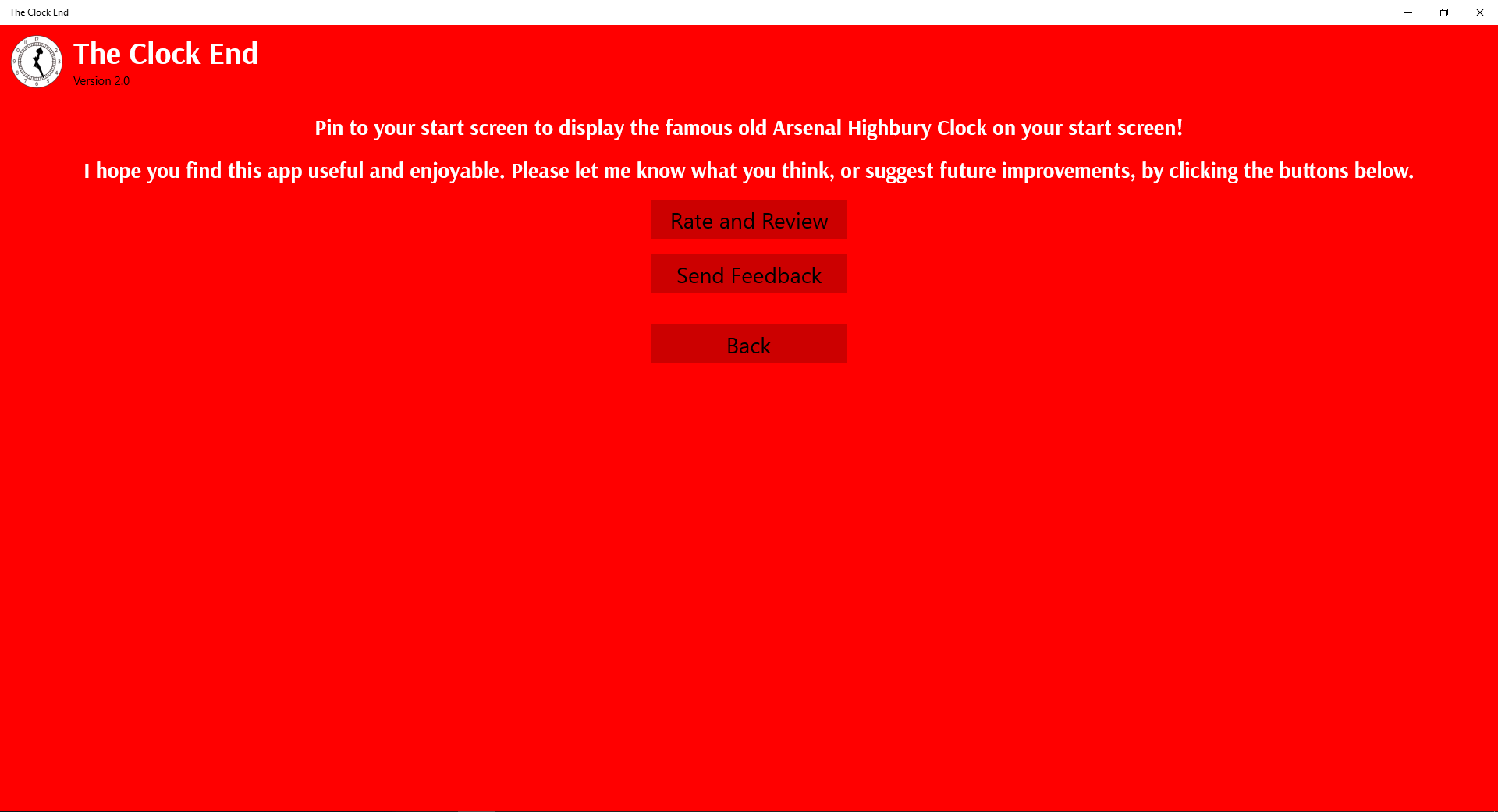Pin the famous old Highbury Clock to your start screen or open the app to get a full screen display!