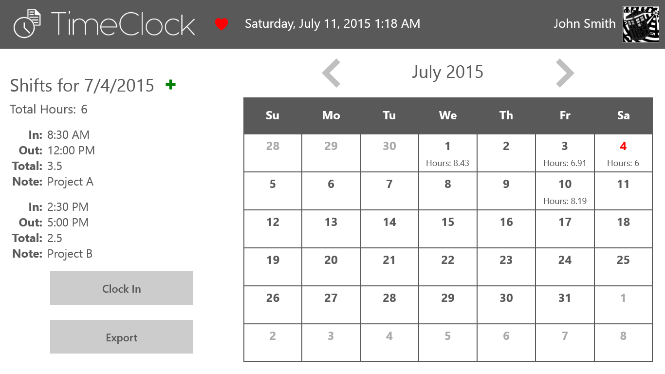 Timeclock is a simple and elegant time tracking solution to help track your hours worked. It has an intuitive design making it quick and easy to use. You can use Timeclock with or without an internet connection and the cloud backup will automatically restore when a connection is made. Your hours worked are safely and securely backed up online in the cloud and accessible on any Windows 10 device linked to your Microsoft Account.