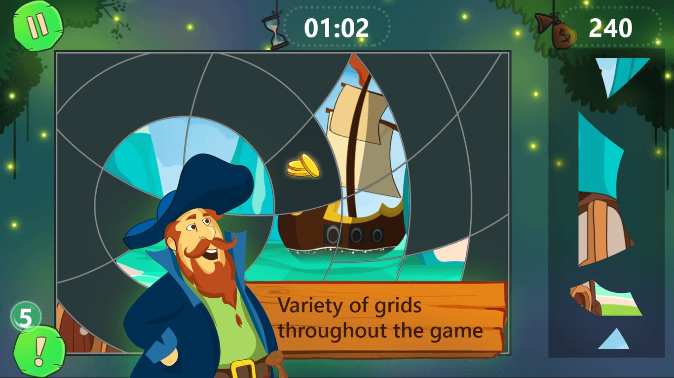 A family-friendly fun games to play that caters to a wide age group of audience.It lets you relive your fantasy of being a pirate, sailing in the high seas to a Treasure Island with this puzzle maker.
