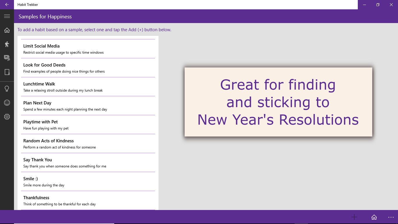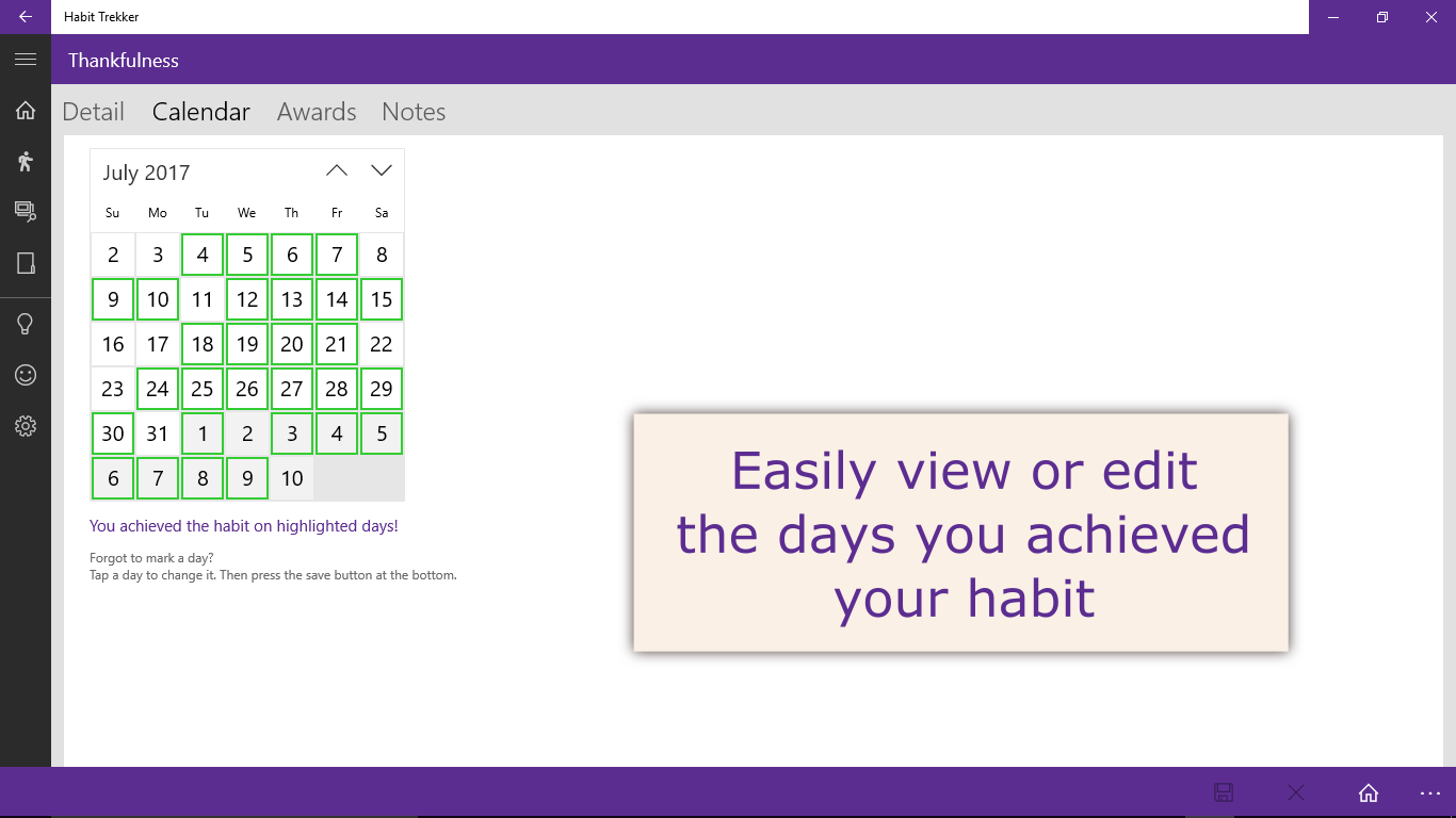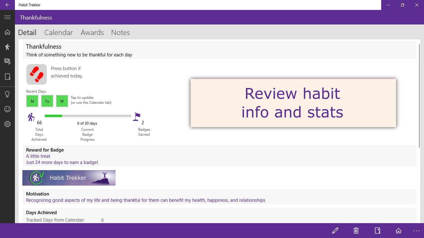 Habit Trekker is a habit tracking app designed exclusively for Windows 10!