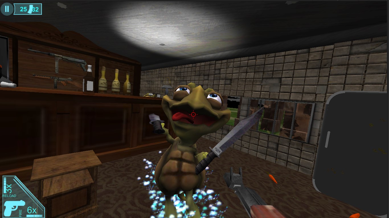First person shooting game with cartoon animals.