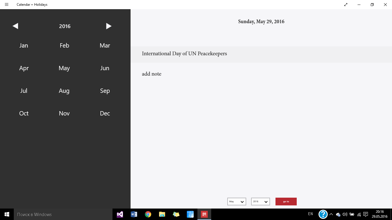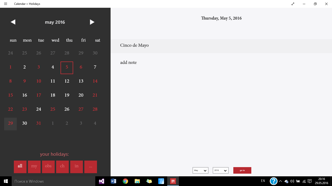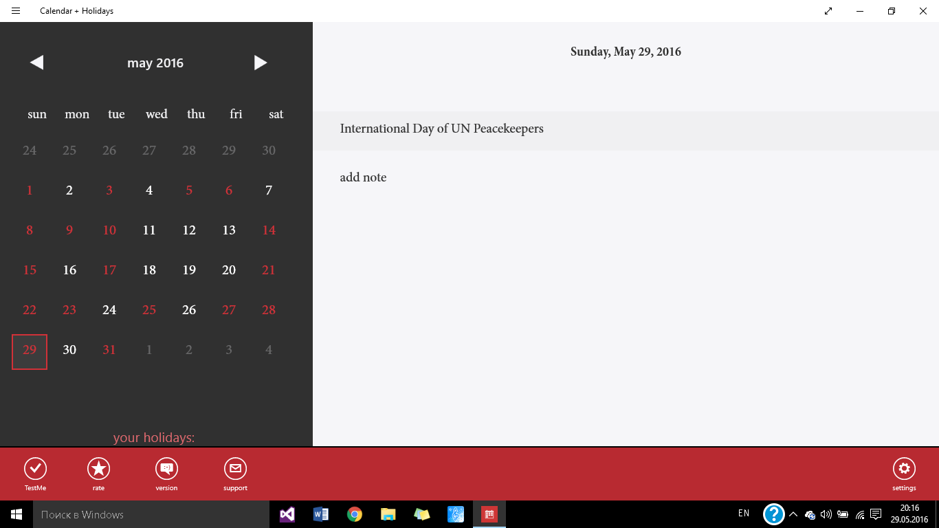 manage your recordsfederal holidaysa set of international holidaysa set of religious holidays10 bright styles2 optional live tiles and toast notificationsone app for computer, tablet and phone