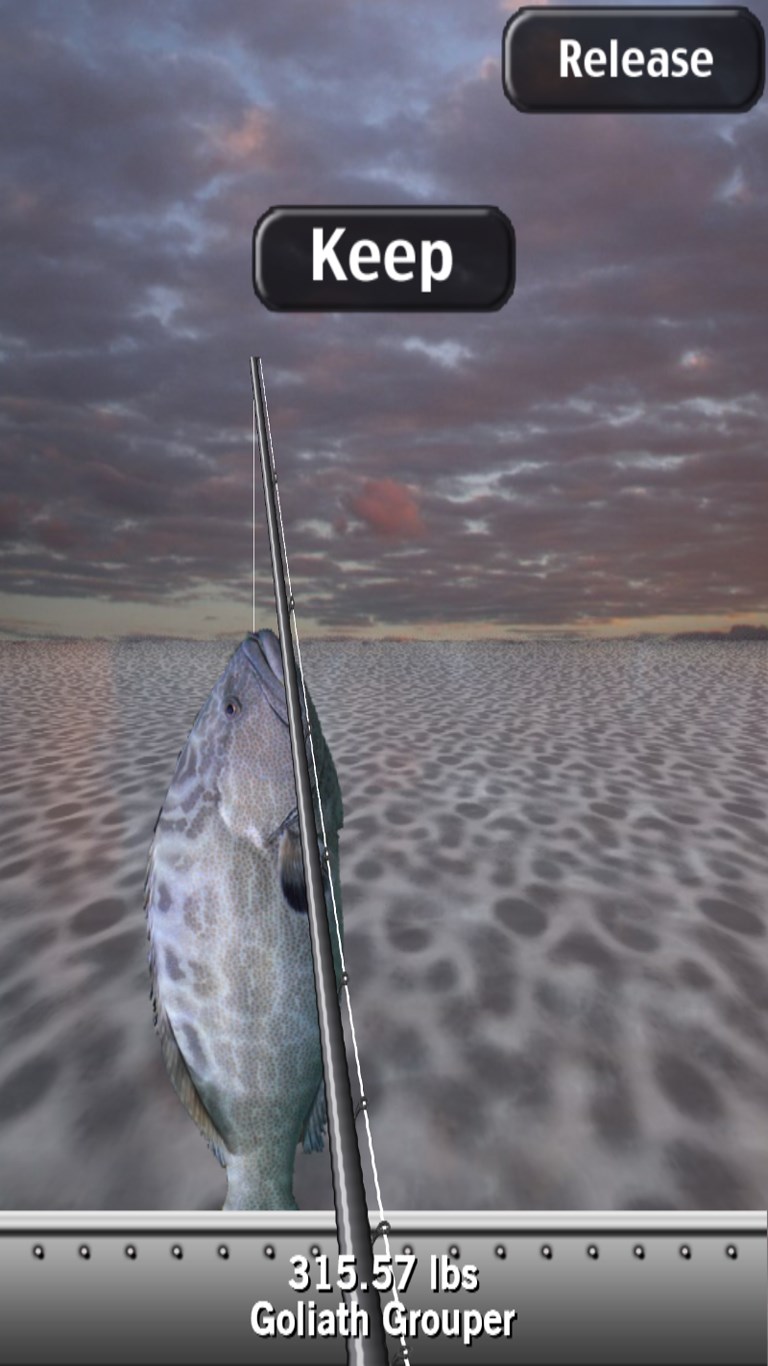 10 tournaments with unlockable locations will keep you playing for a long timeVariety of lures with different actions (jigs, topwater, spoons, divers)Many species of saltwater fish to catch (blue marlin, swordfish, bluefin tuna, sharks, greater amberjack, red snapper, goliath grouper, barracuda, false albacore, flaming angel, knobbed porgy, nassauUse the device\'s accelerometer to cast, jig, aim your lure, and fight fish.Exciting fish fights while keeping the line tension in check, even see them jump!Use the fish finder and drive your boat to seek out the best places to fishAdvanced fish AI, including schooling behavior, lure preferences, and hotspots based on structure such as dropoffs, weeds, reefs, and logsPractice, Tournament modesDay/night cycle and relaxing ocean ambient soundsTrophy room to keep track of your biggest fish ever caught.Fishing guide gives you audible advice and encouragement!