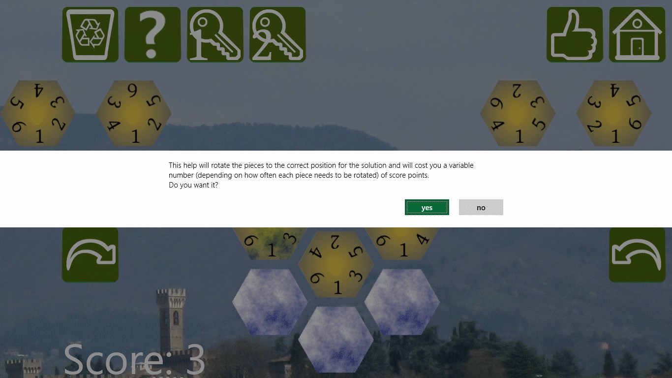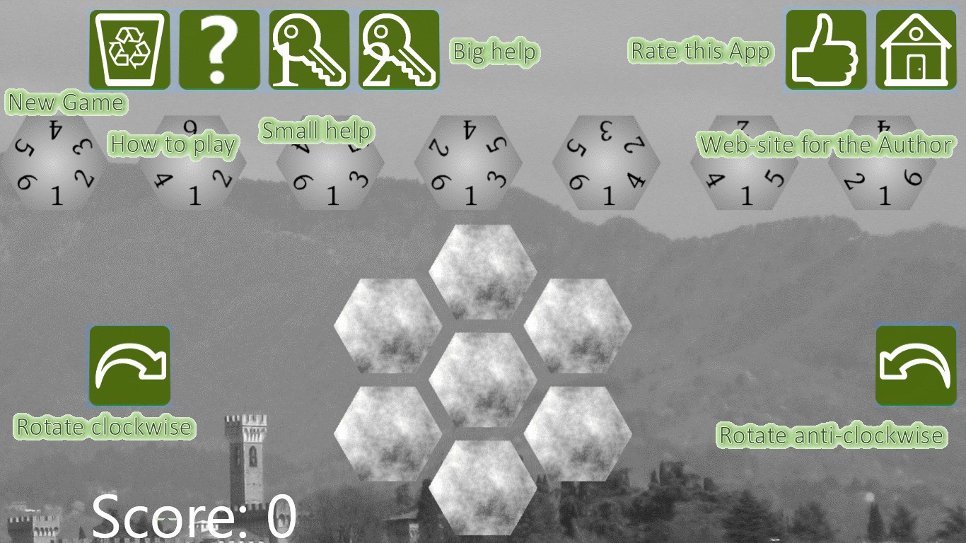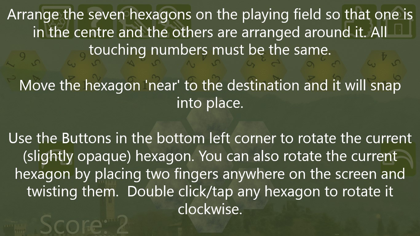 Use the Buttons in the bottom left corner to rotate the current (slightly opaque) hexagon. You can also rotate the current hexagon by placing two fingers anywhere on the screen and twisting them. Double click/tap any hexagon to rotate it clockwise.