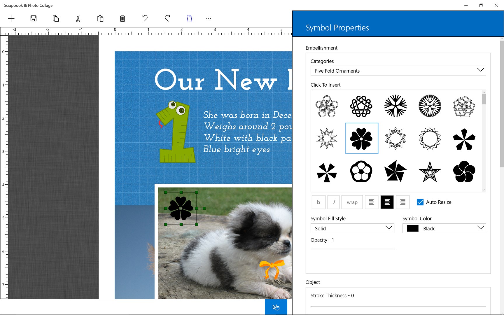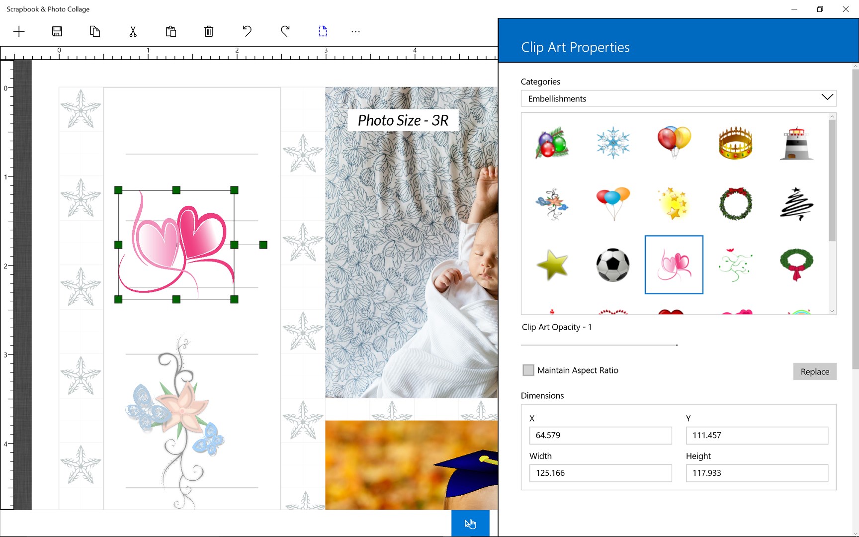 Over 100 Scrapbook & Photo Collage TemplatesOver 550 Decorative EmbellishmentsOver 100 Fun Clip Art, Textures and Craft PapersWYSIWYG Designer with Image CroppingImport Additional FontsProfessional Canvas Wizard for customizing background and size