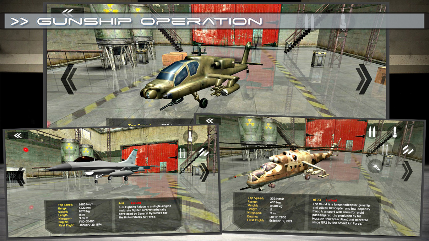 [Gunship Operation] provides you an opportunity to select your favorite aircraft to complete your mission successfully.