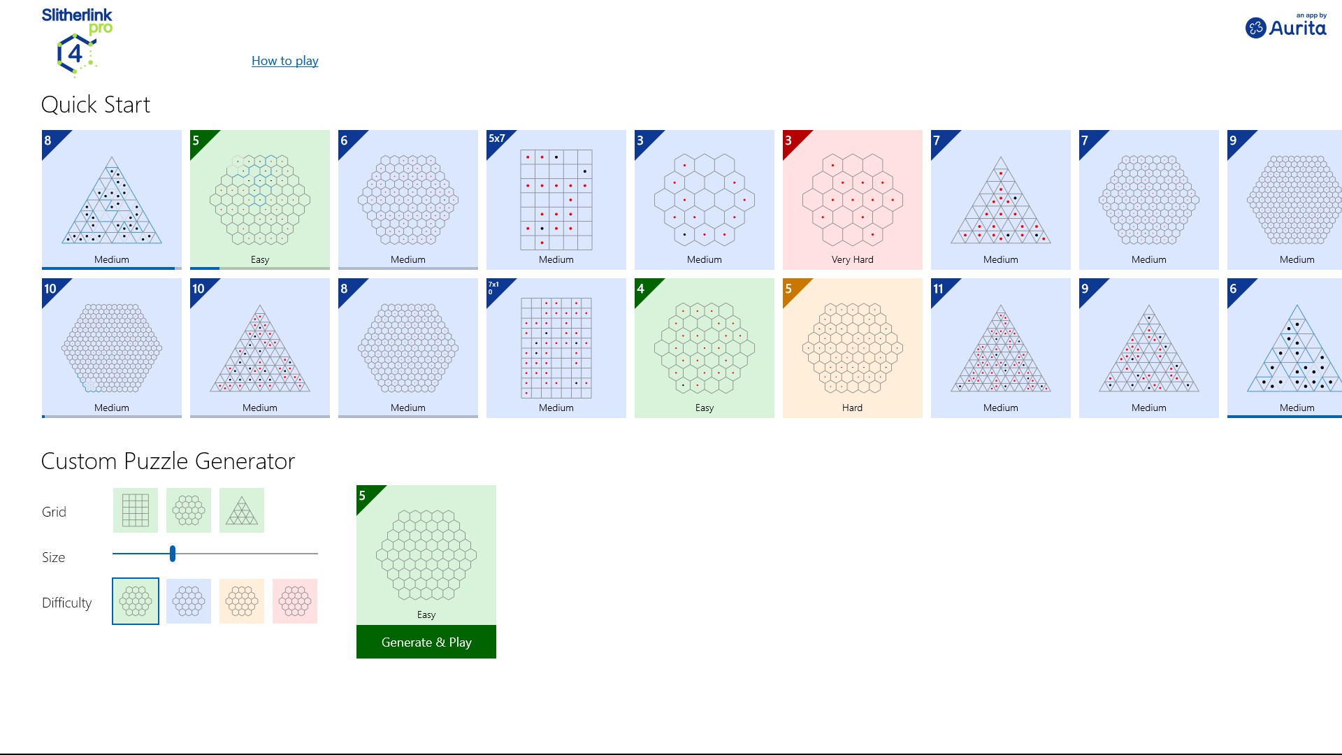 The ultimate Slitherlink puzzle app. 4 different grids, 4 difficulty levels, heaps of different sizes.