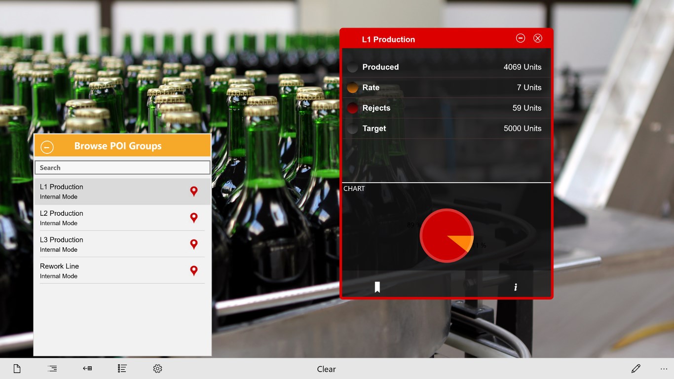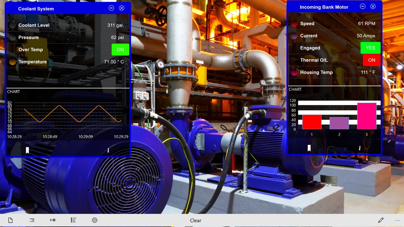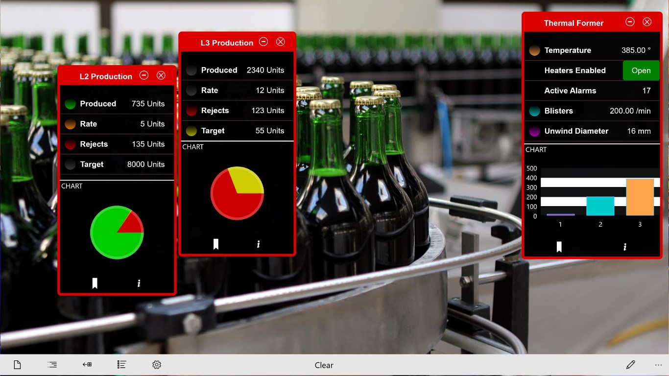 For instance, you could walk up to a assembly line, scan a QR code with your Windows Tablet, and show the number of units produced, production rate, and number of rejects, all live data from your HMI, SCADA, PLC or Database. You can also view preventative maintenance actions and trouble reports from your local systems, or call up production schedules from a database, or email or call a vendor or supervisor.