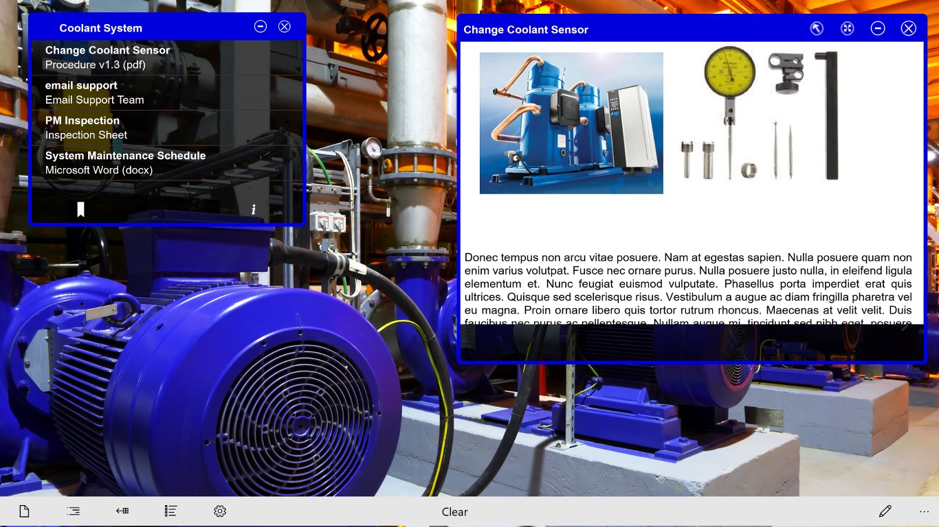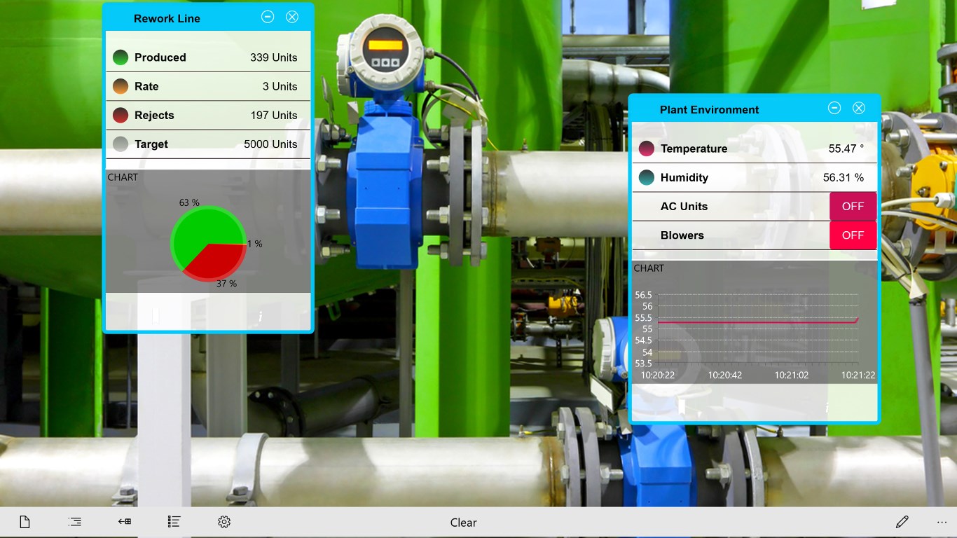 Recognizes equipment on your Plant Floor and displays live data, schematics and other relevant information sabout the equipment.Allows you to record screenshots augmented with live data and send them to remote technical resources for quick analysis.