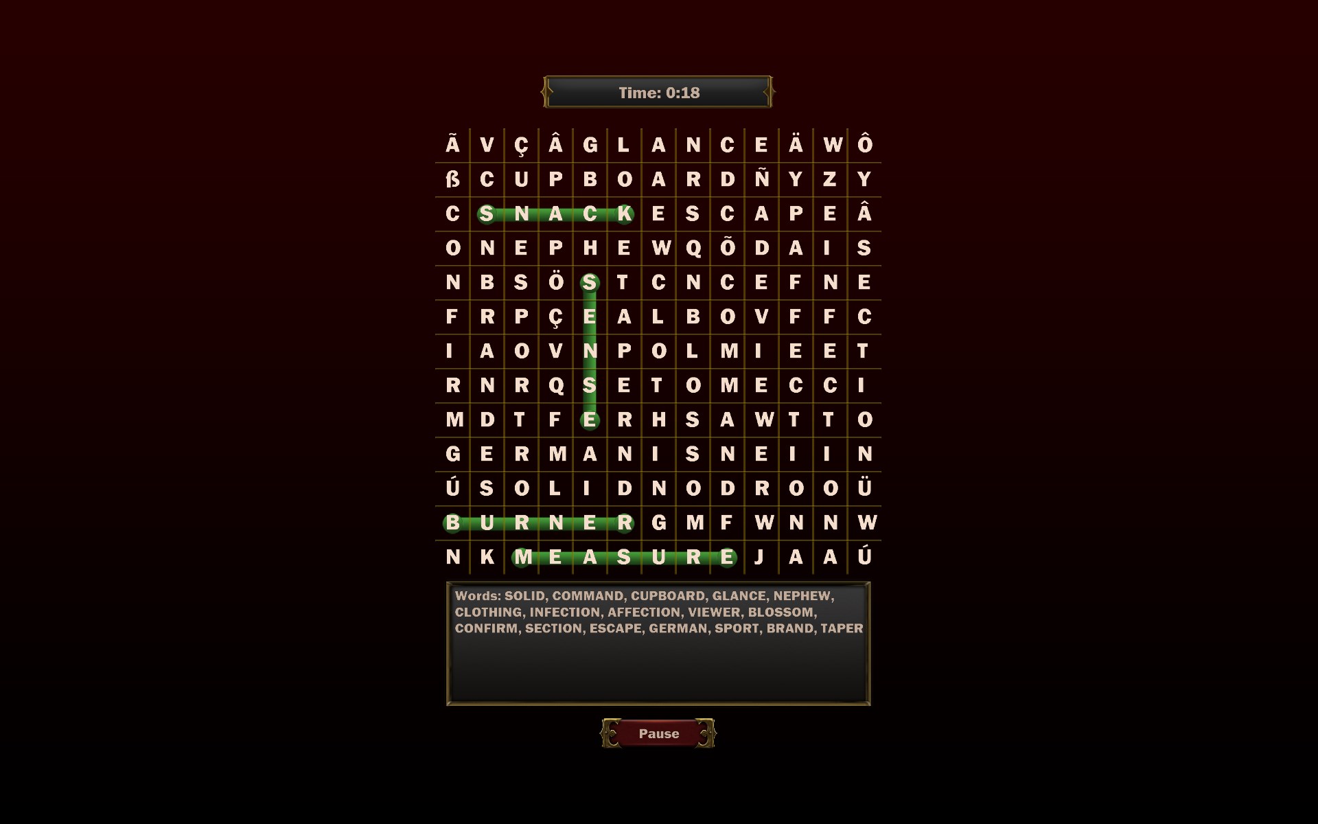 Find all the words in the playfield as fast as possible.