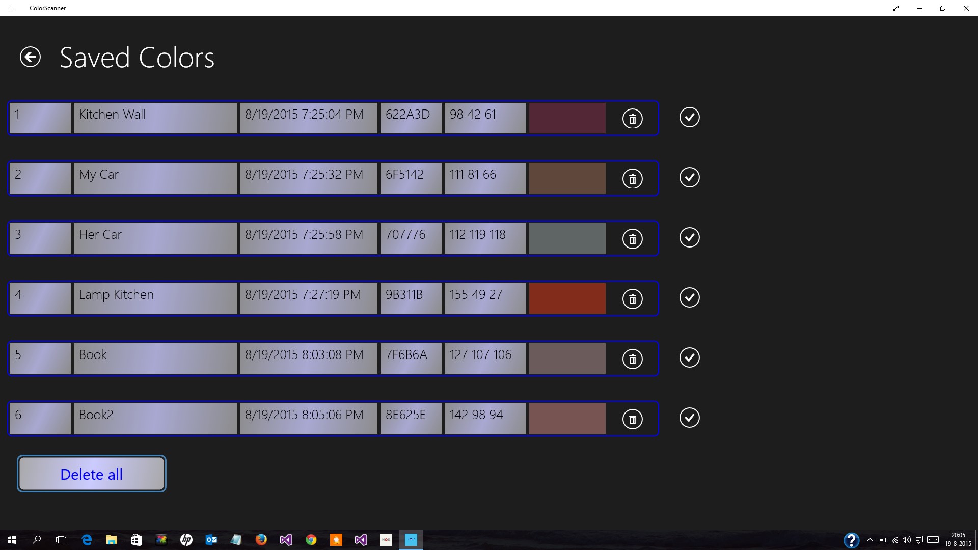 Color scannerGet the name of the colorCalculate HEX and RGB valueCalculate the average colorSaving for further use