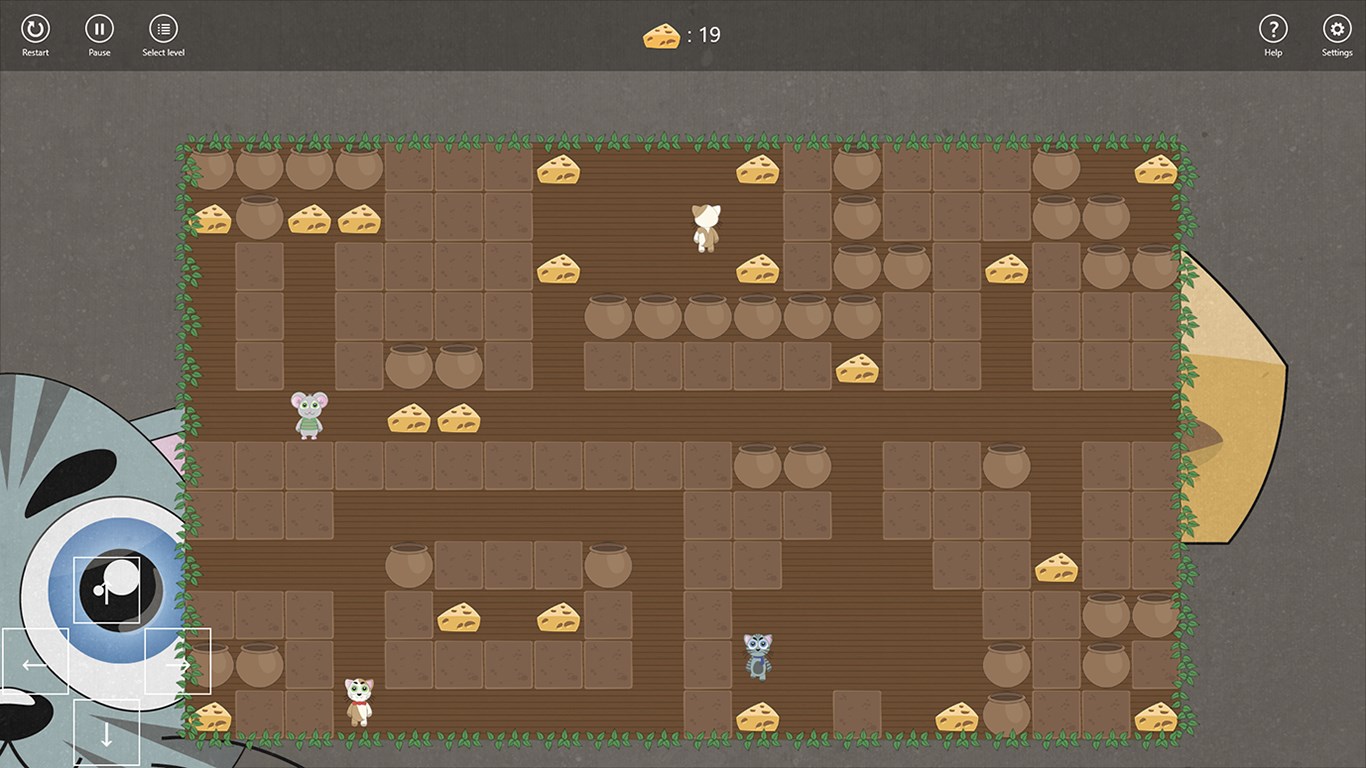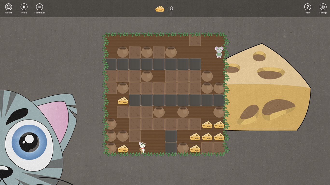 Mouse must collecting pieces of cheese and reach the exit, while avoiding various types of dangerous creatures as well as obstacles like falling rocks and the constant danger of being crushed or trapped by an avalanche.