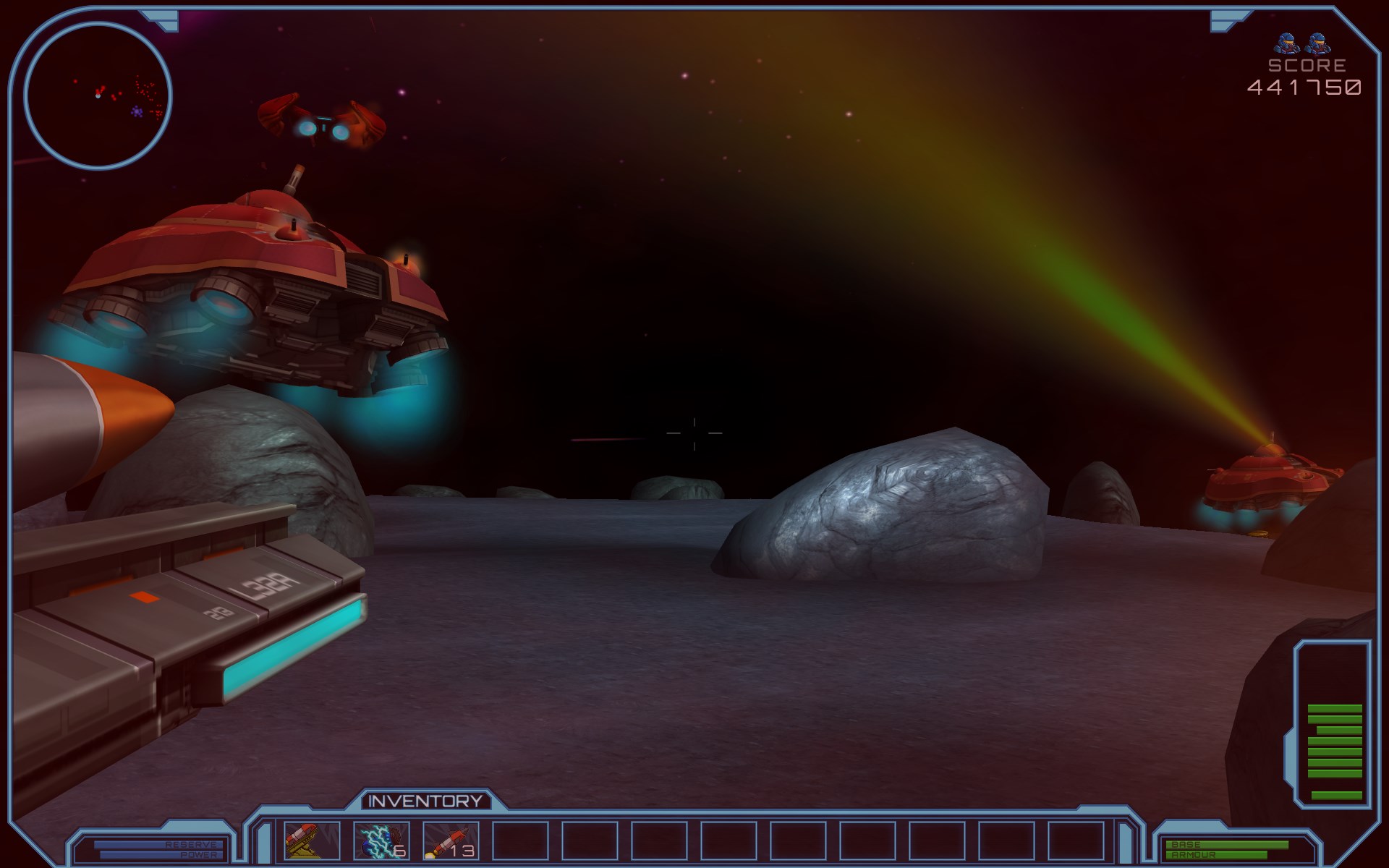 Battle Rock is a first-person arcade extravaganza with heavy action and real-time strategy. Fight a massive army of alien mechs, looting wreckage and building defences. Turn a barren scrap of moonscape into an impenetrable island of doom.