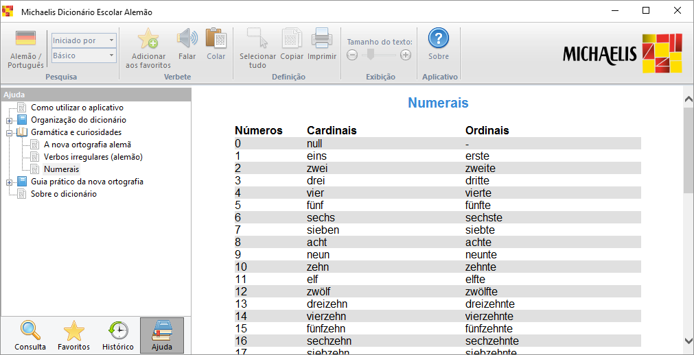 Conteúdo completo, sem exigir conexão com a Internet.Mais de 50.000 traduções.Mais de 25.000 expressões e exemplos.Pronúncia das palavras em alemão.Divisão silábica das entradas dos verbetes.Transcrição fonética do alemão e do português.Classe gramatical dos vocábulos e regência dos verbos.Expressões idiomáticas, provérbios e gírias.Notas sobre questões gramaticais e sobre o uso adequado de palavras e expressões alemãs.Conjugação completa de todos os verbos da língua portuguesa do dicionário.Tabelas de numerais e conjugação verbal.Nova ortografia do português, conforme o Acordo Ortográfico.Guia prático do Acordo Ortográfico.Consulta avançada do português por aproximação ortográfica.Consulta por início, fim, trecho e conteúdo dos verbetes.Histórico de consultas e verbetes favoritos.
