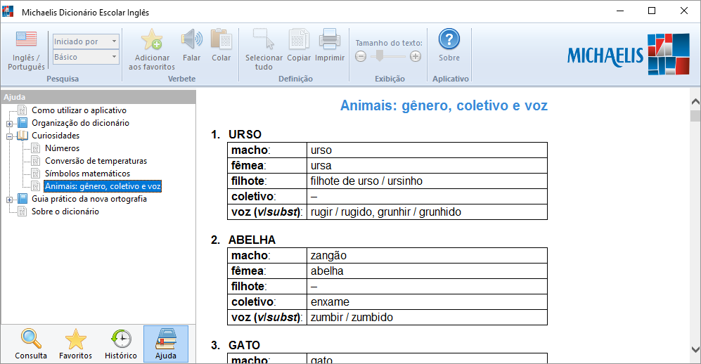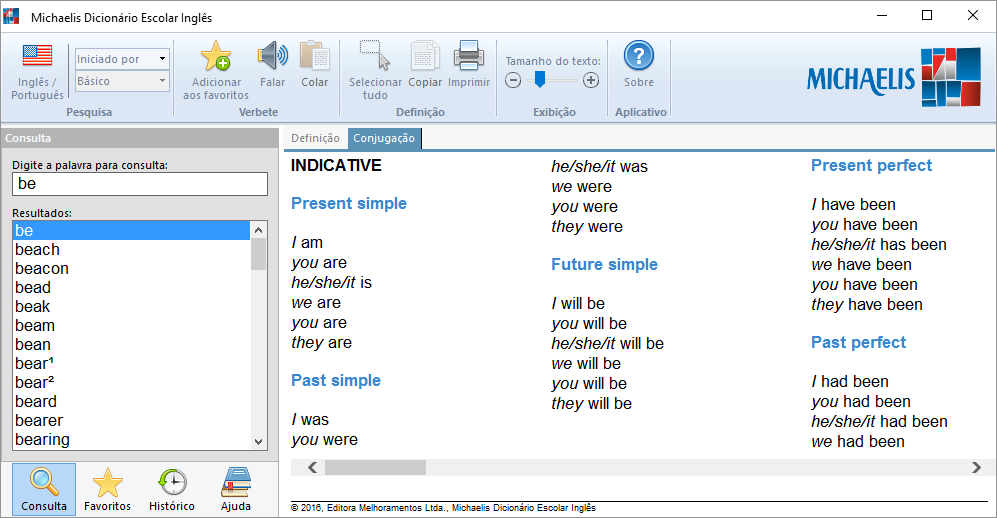 Conteúdo completo, sem exigir conexão com a Internet.Mais de 75.000 traduções.Mais de 30.000 expressões e exemplos.Pronúncia das palavras em inglês.Divisão silábica das entradas dos verbetes.Transcrição fonética do inglês e do português.Classe gramatical dos vocábulos e regência dos verbos.Notas sobre questões gramaticais e uso adequado de palavras e expressões inglesas.Conjugação completa de todos os verbos da língua portuguesa e inglesa do dicionário.Curiosidades, dicas e tabelas de conjugação verbal.Nova ortografia do português, conforme o Acordo Ortográfico.Guia prático do Acordo Ortográfico.Consulta avançada do português por aproximação ortográfica.Consulta por início, fim, trecho e conteúdo dos verbetes.Histórico de consultas e verbetes favoritos.