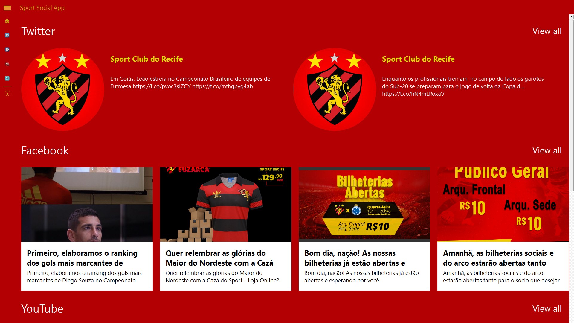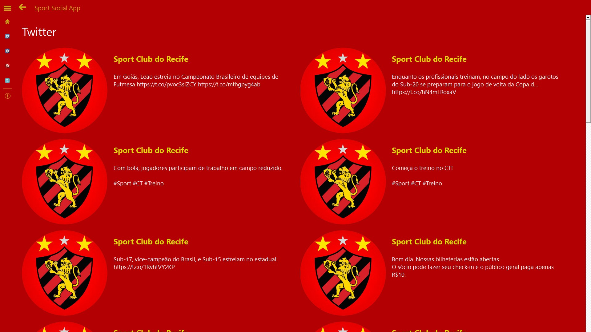 Sport Club do Recife Social App, agora você que é Torcedor pode ter o melhor da Sport Club do Recife no seu celular ! Fique conectado com as últimas notícias, vídeos e atualizações sociais do Sport Club do Recife.