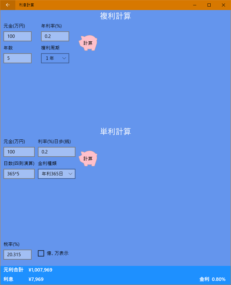 単利、複利、積み立て計算であなたのマネープランを支援します。