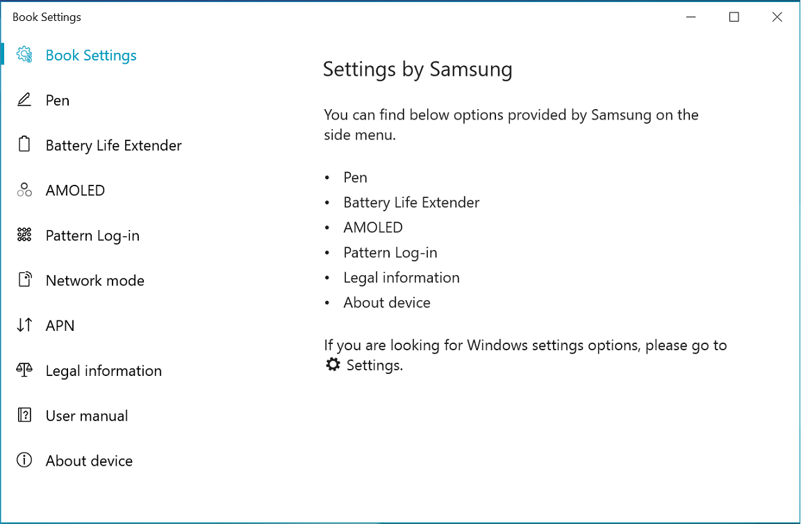 Book Settings is an application for Galaxy Book. It may not function normally on other devices.