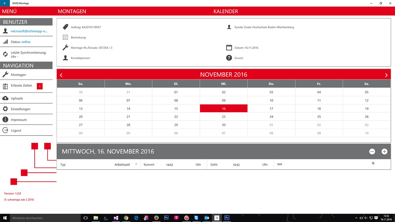 - Übersicht der persönlichen Montageeinsätze