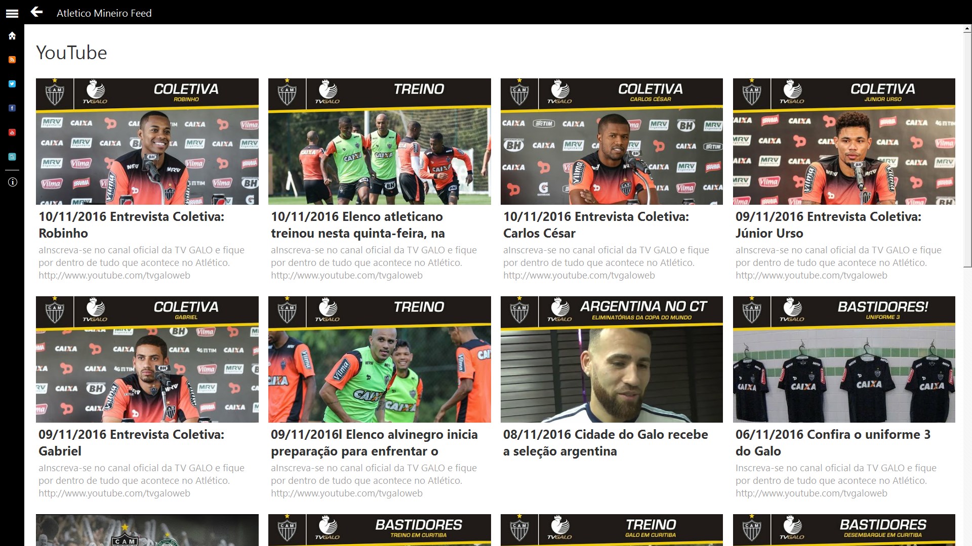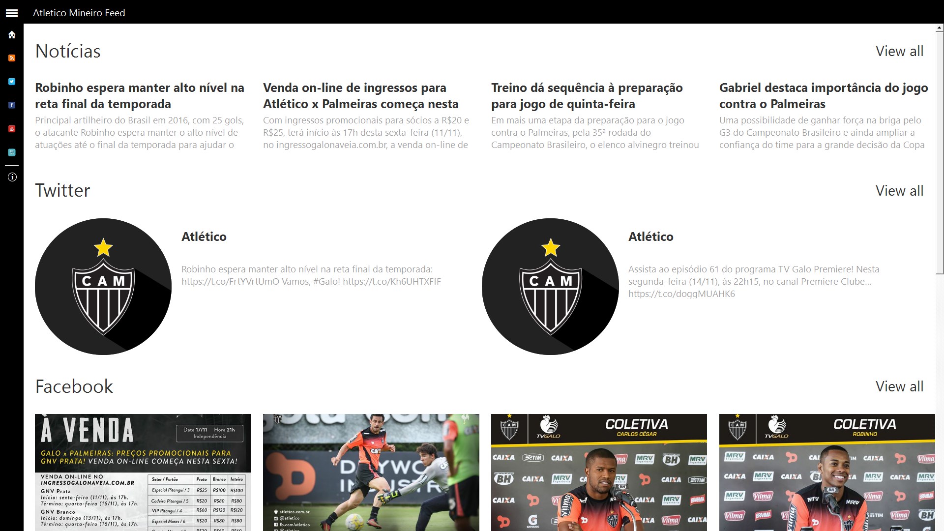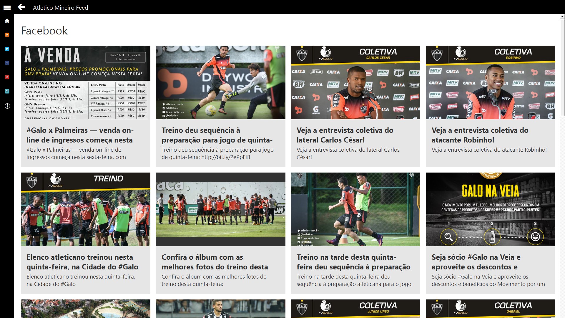 Atlético Mineiro Feed, agora você que é Torcedor pode ter o melhor do Atlético Mineiro no seu celular ! Fique conectado com as últimas notícias, vídeos e atualizações sociais do Atlético Mineiro.