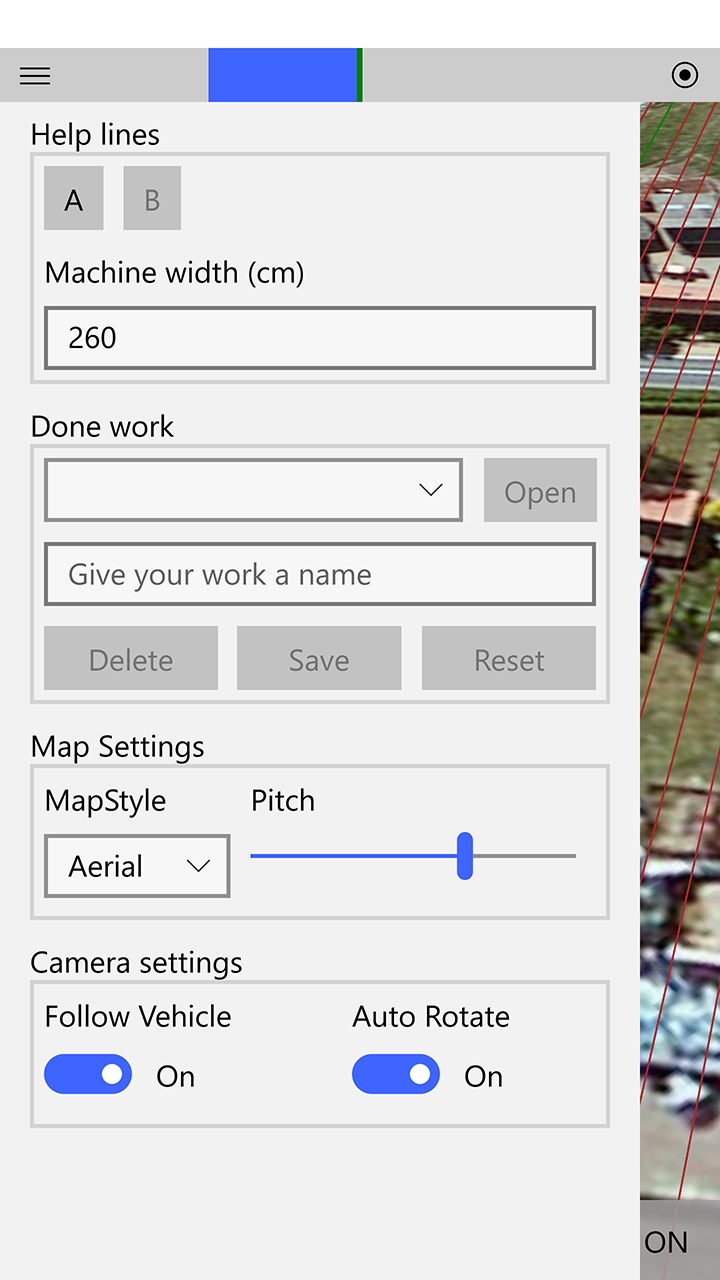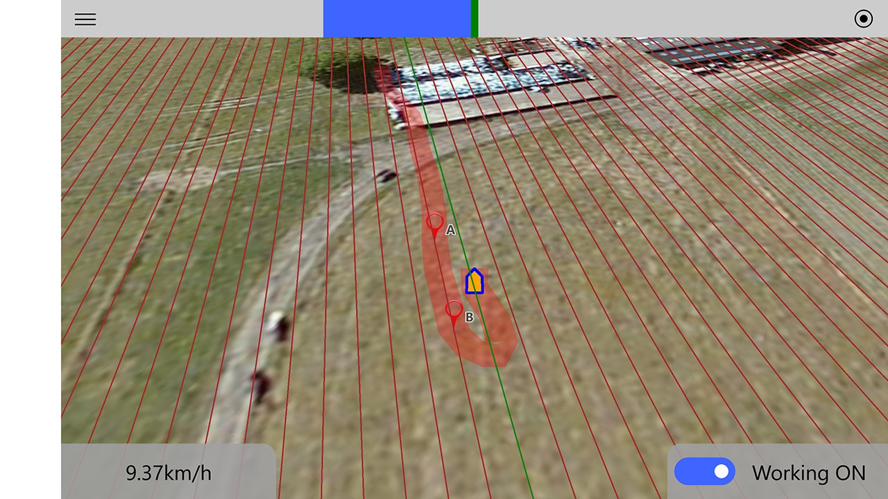 Set the width of your machine and use the A and B buttons to create guidelines and get steering corrections.