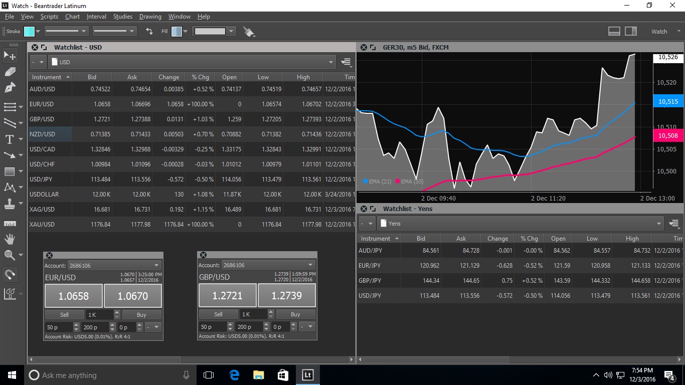 Welcome to Latinum, trading and technical analysis software, with streaming quotes for Forex, and CFDs, up to the second market data for US stocks, and EOD data for international stocks.