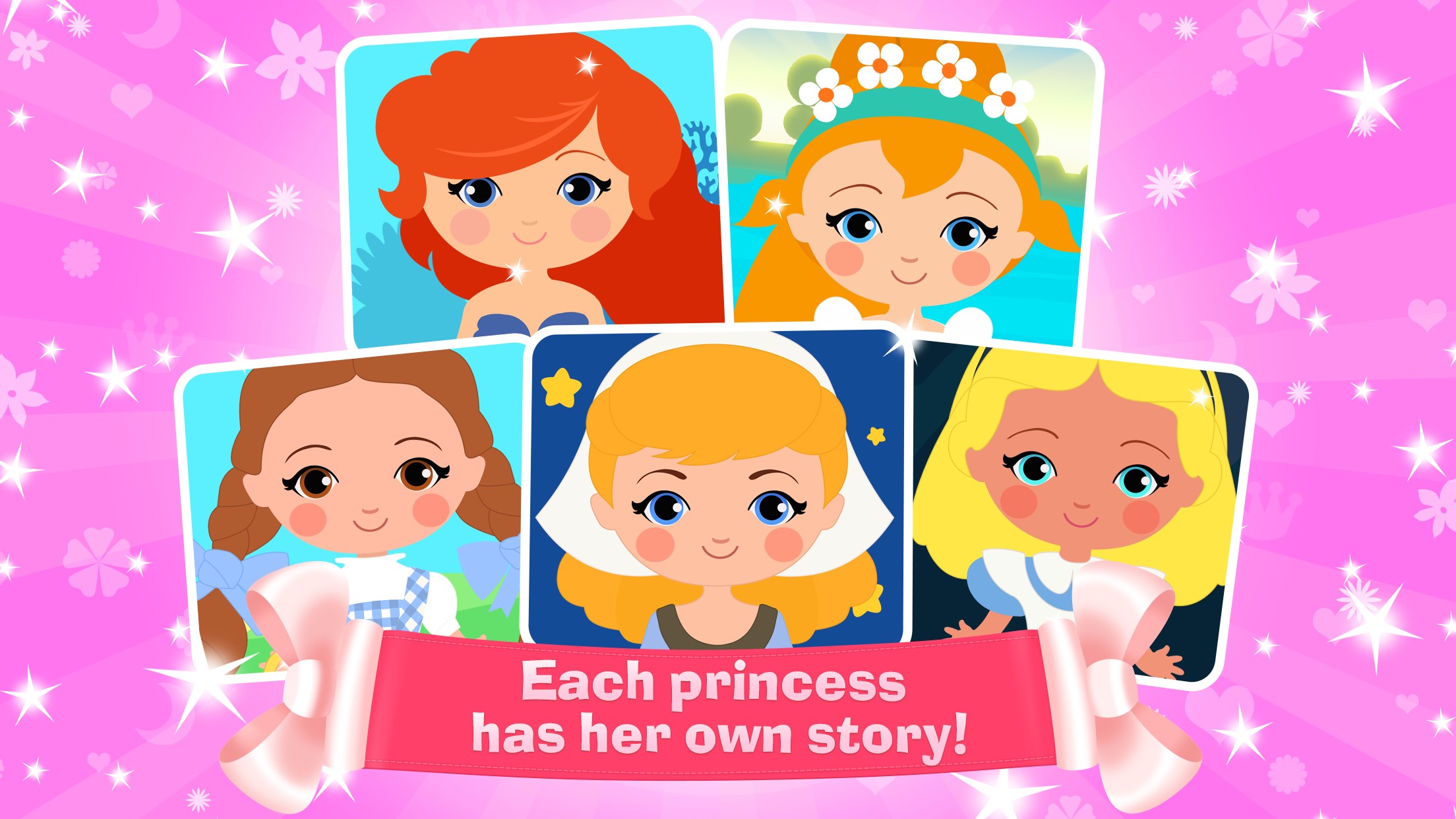 • Heroines from famous fairy tales, including gentle Cinderella, the courageous Little Mermaid, brave Dorothy, delicate Thumbelina, and curious Alice