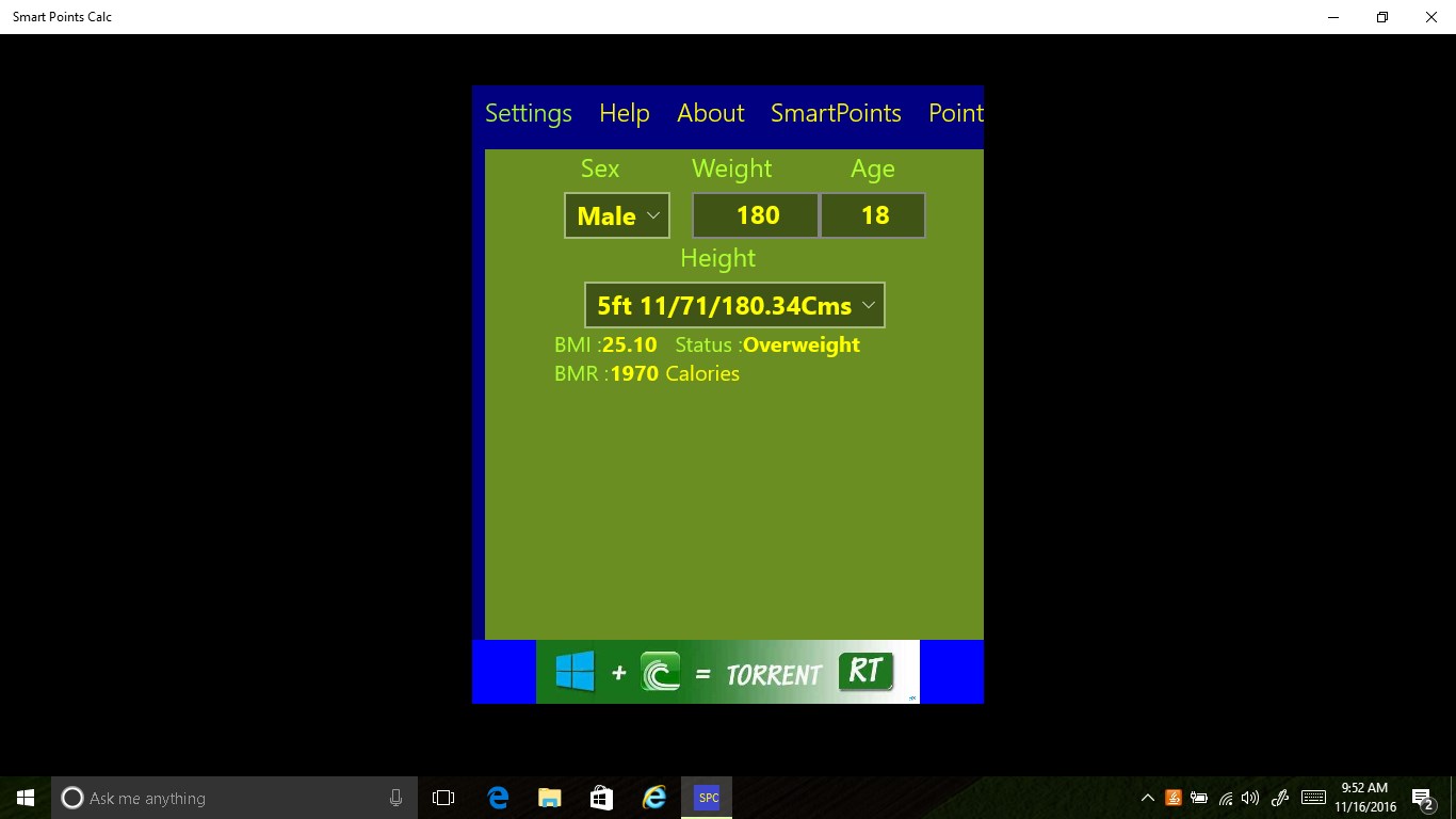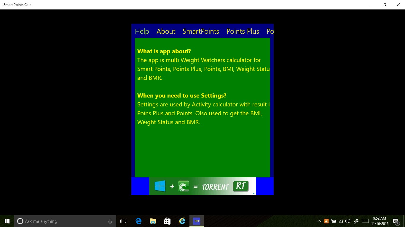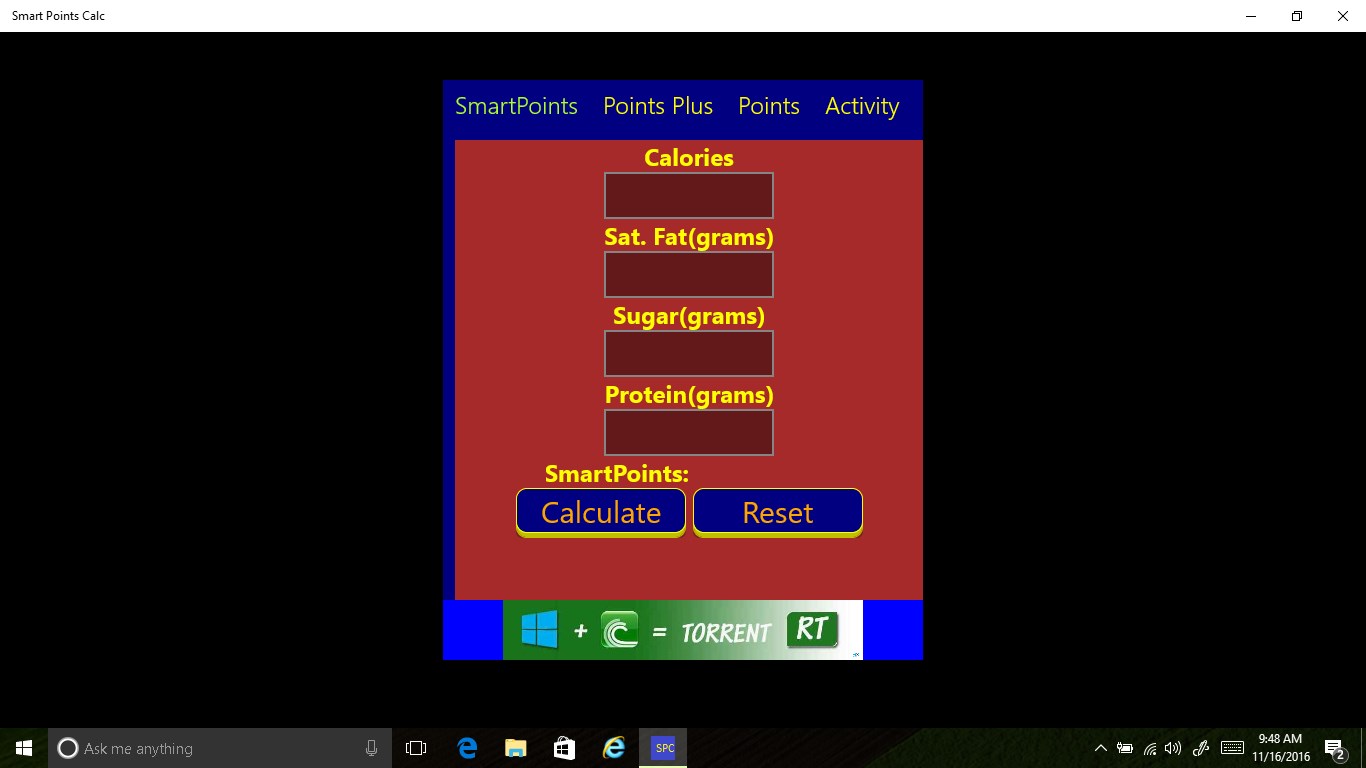The app is multi Weight Watchers calculator for Smart Points, Points Plus, Points, Activity, BMI, Weight Status and BMR. SmartPoints, PointsPlus and Points are Weight Watchers Treademark