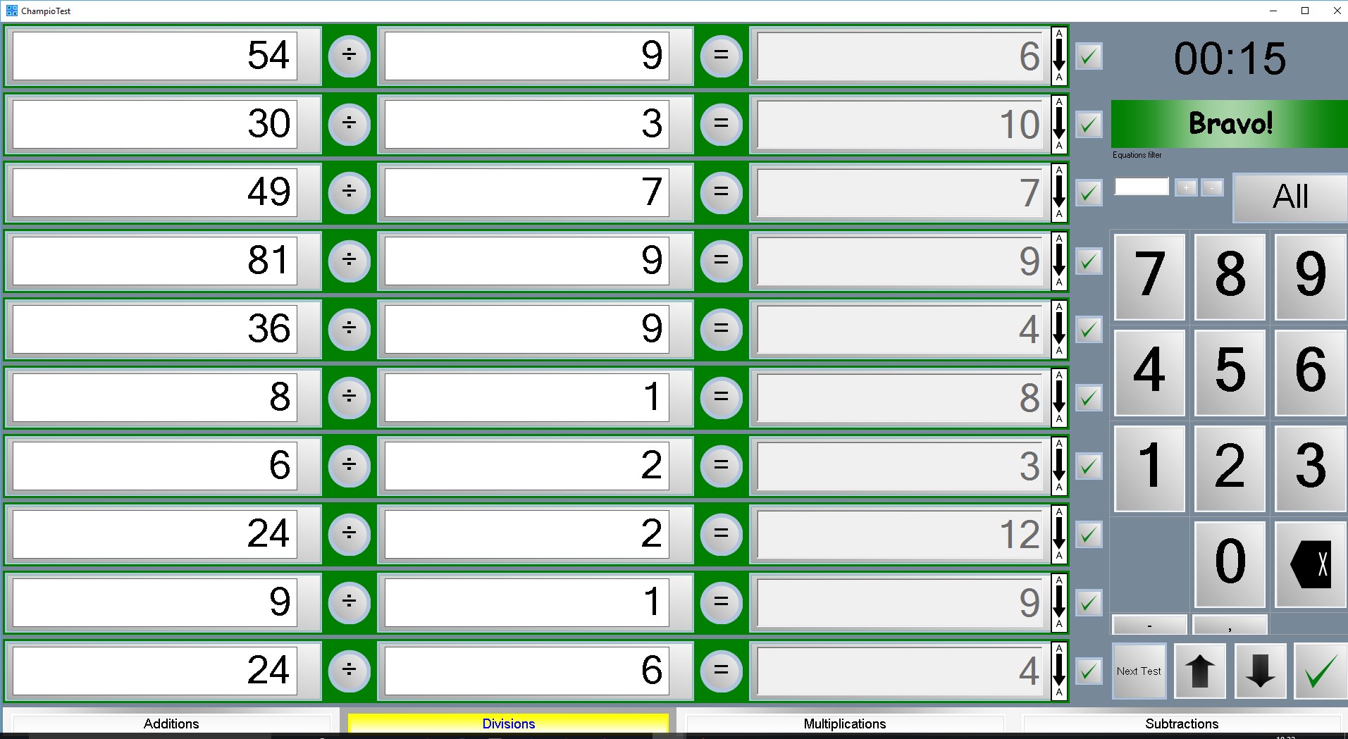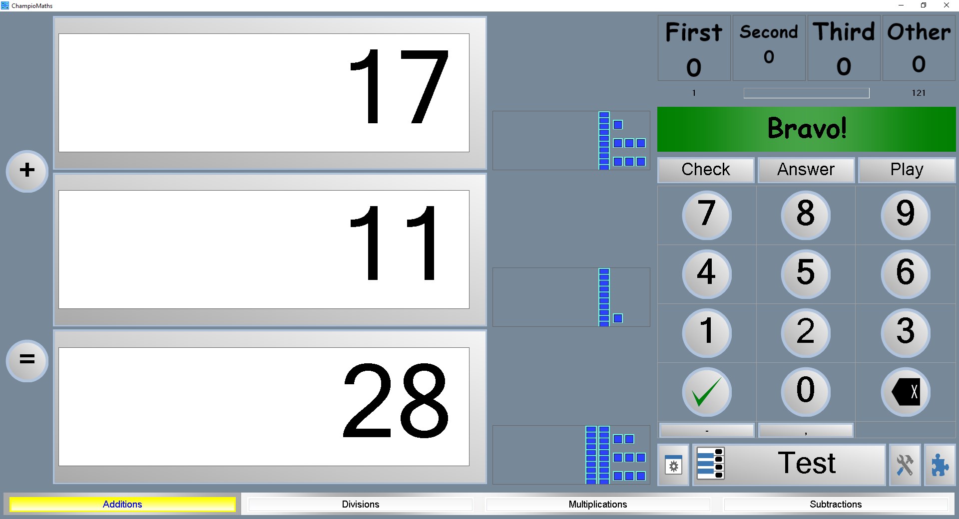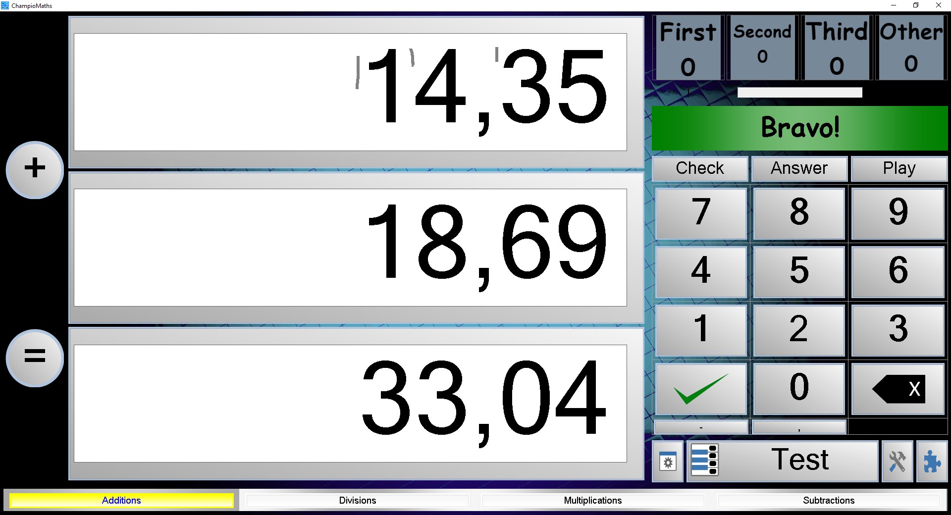 ChampioMaths was developed to help to learn and practice mathematics equations. It can be used with a keyboard, a touch screen or on interactive boards.
