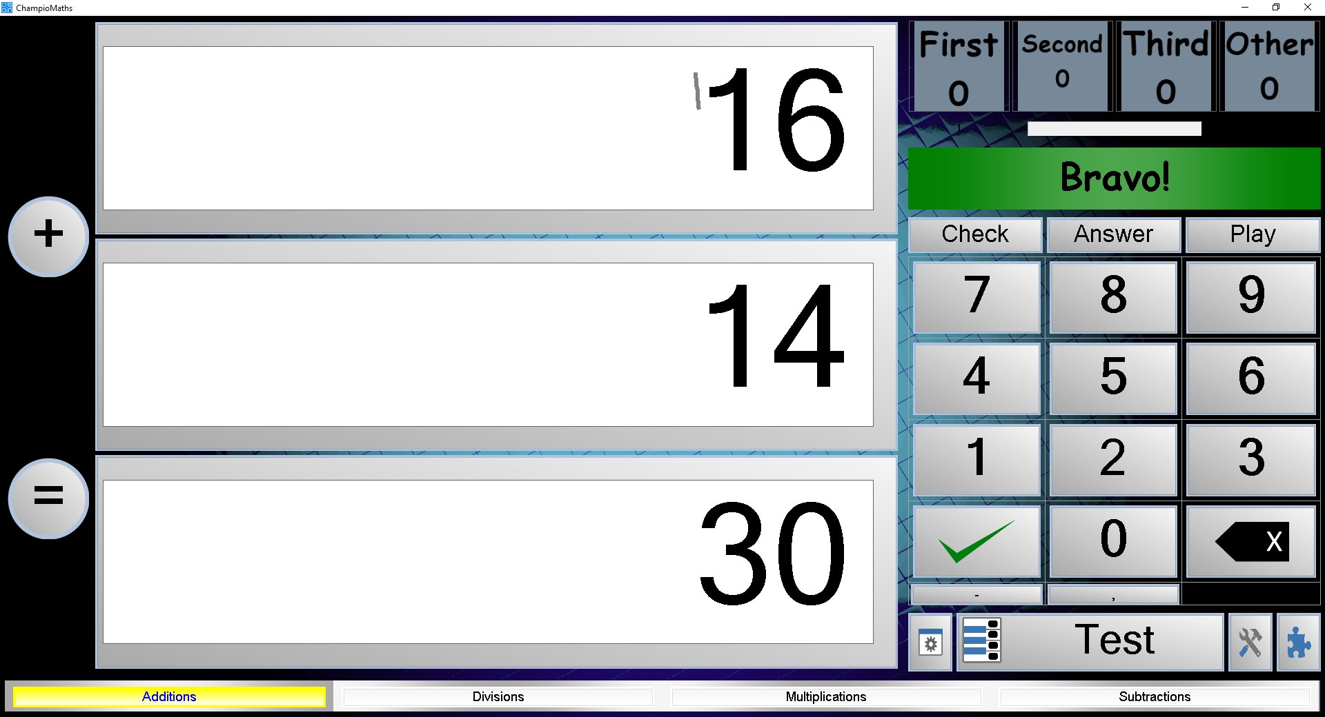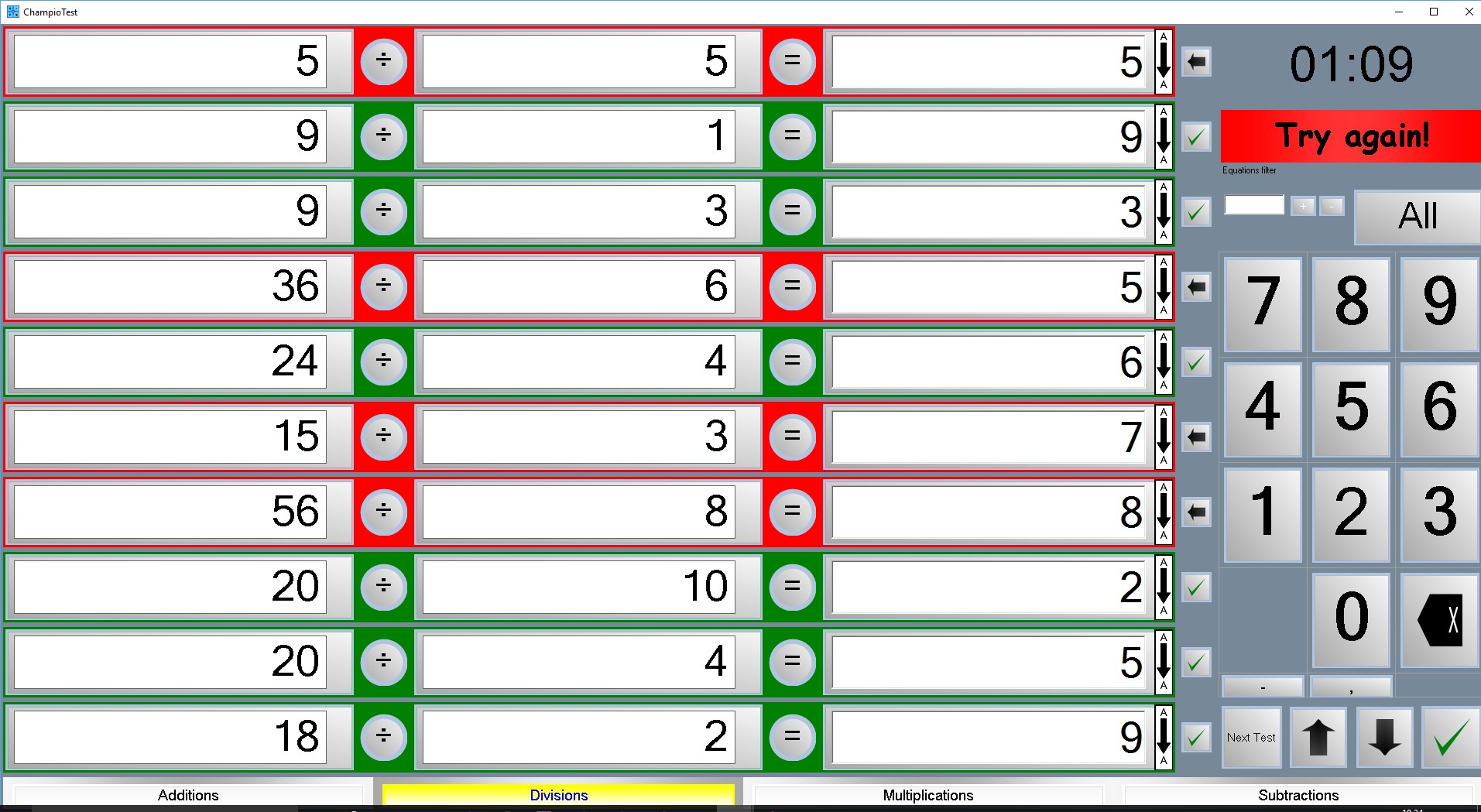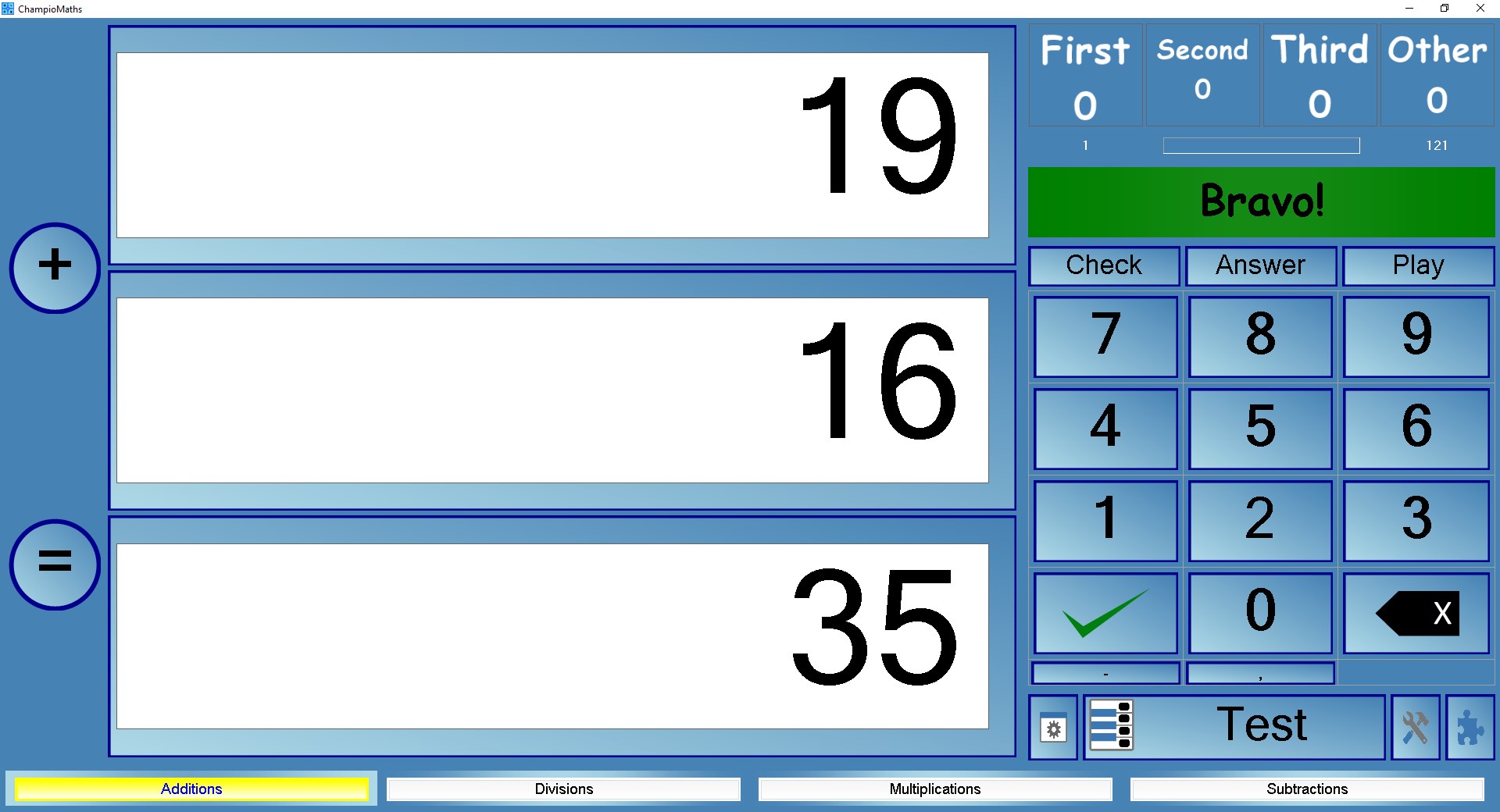 ChampioMaths was developed to help to learn and practice mathematics equations. It can be used with a keyboard, a touch screen or on interactive boards.