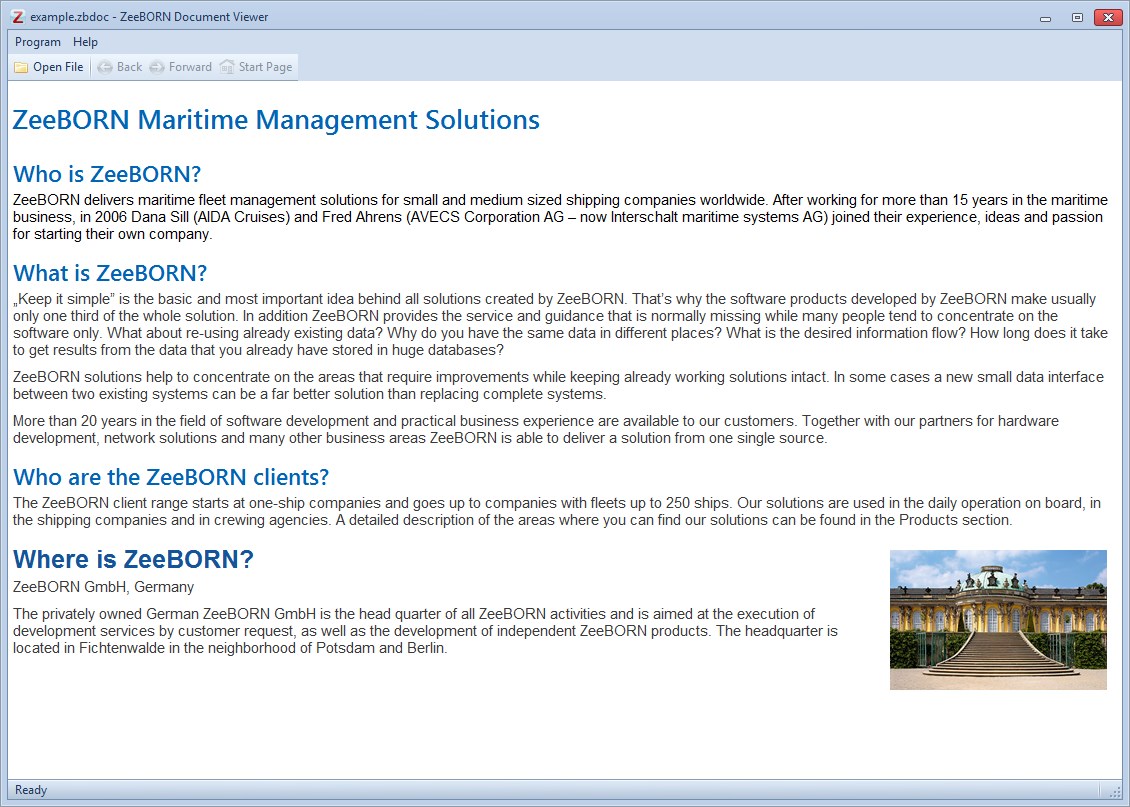 ZeeBORN Document Viewer allows you to open and view document files created with the ZeeBORN Fleet Management software (files with .zbdoc file extension).