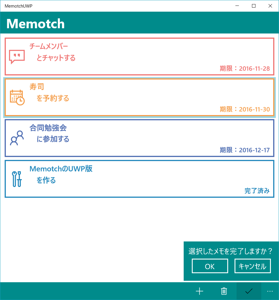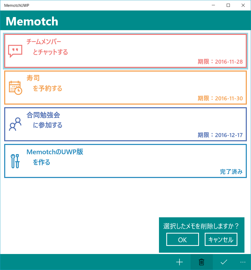 MemotchUWPはWindows Phone 8.1向けに開発した「Memotch」のWindows 10、Windows 10 Mobile版です。