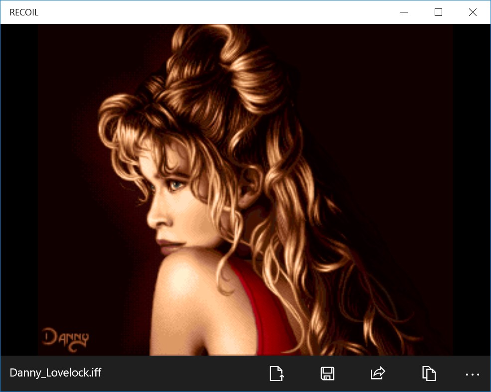 RECOIL (Retro Computer Image Library) is a viewer of pictures in native formats of 20th century computers: Amiga, Amstrad CPC, Apple II, Atari 8-bit, Atari Portfolio, Atari ST/TT/Falcon, BBC Micro, Commodore VIC-20, Commodore 16, Commodore 64, Commodore 128, Electronika BK, FM Towns, Macintosh 128K, MSX, NEC PC-80/88/98, Oric, Psion Series 3, SAM Coupé, Sharp X68000, Tandy 1000, Timex 2048, TRS-80, TRS-80 Color Computer, ZX81 and ZX Spectrum.
