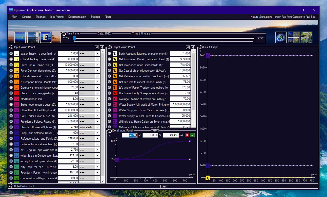 Nature Simulations again rises an innovative idea where no one shall be in sorrow for their own, beloved Family, Future, Tradition and Culture. So the simulation time has been adjusted to more than 100 years (until the reference simulation fills up the Caspian Sea basin).