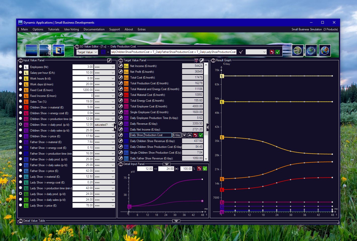 The special thing about the Windows 10 Store App for Photovoltaic System is that all formula editors are activated by default. So you can translate PV System to your very own languages, and create your own variants, for example, simulating PV Systems with certain batteries.