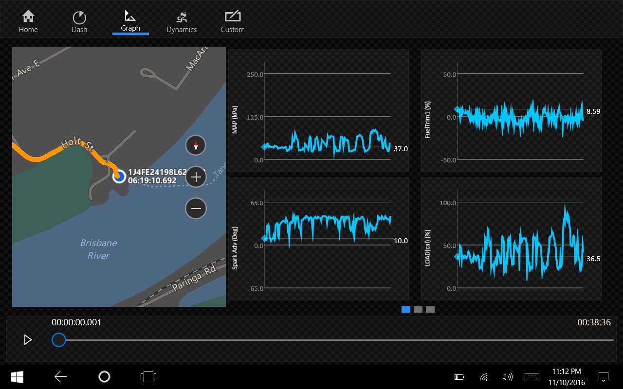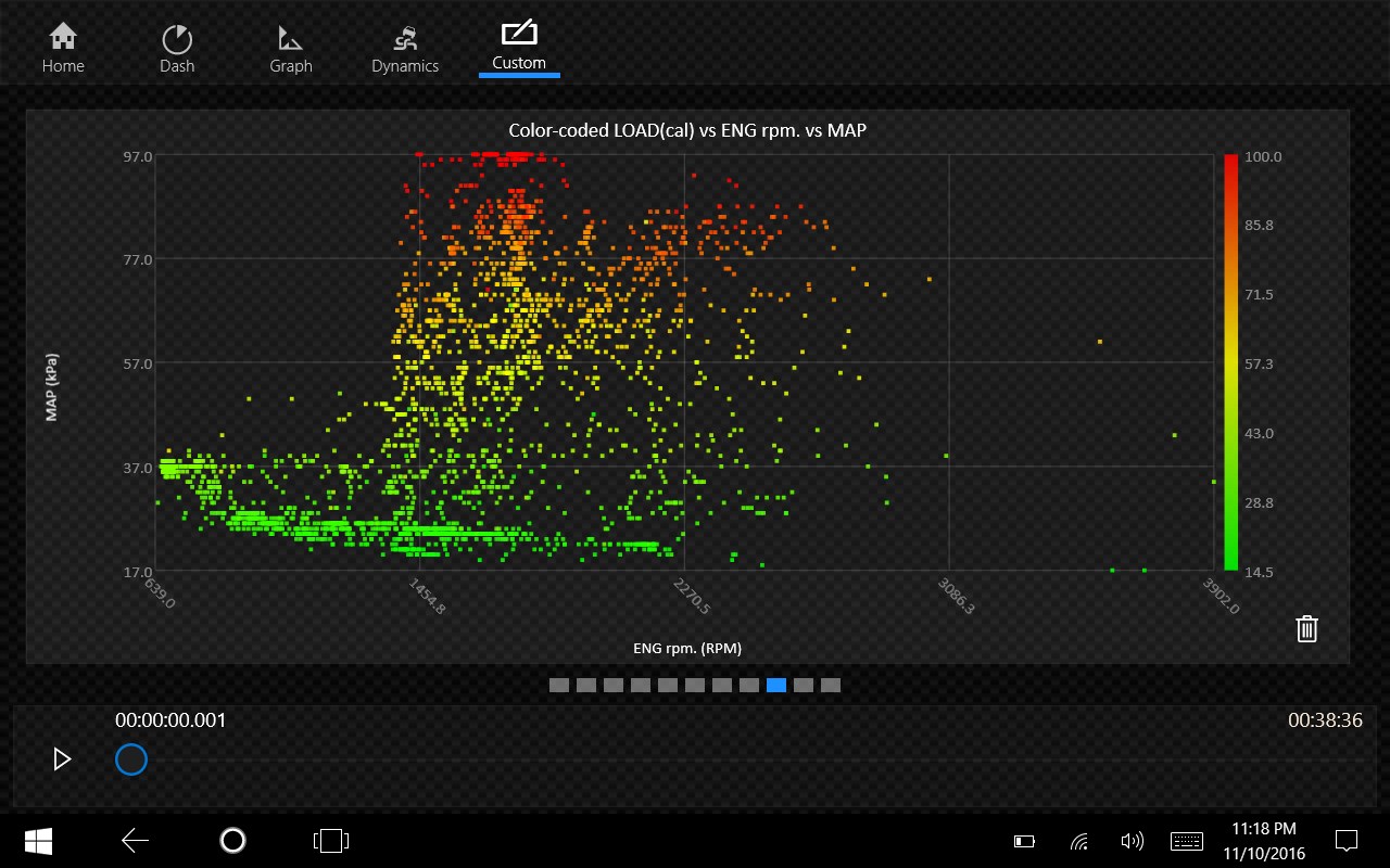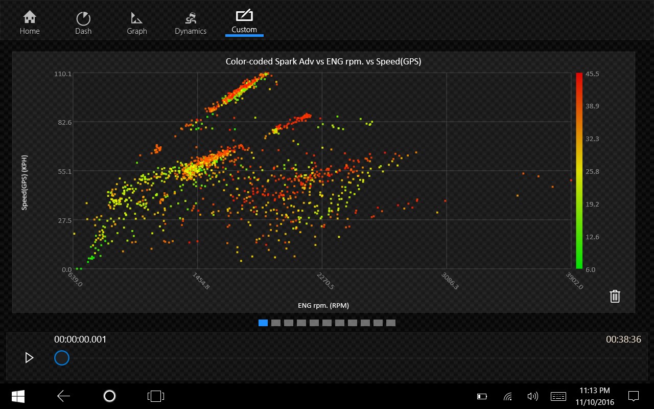 Automatic relate data by its location and time stampOBD sessions playbackVarious 2 and 3 dimensional charts such as colored scatter plots, line charts, histograms