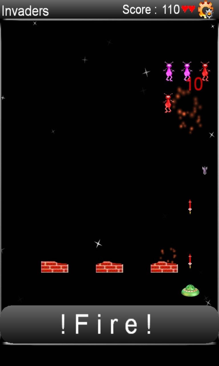 Waves of colorful, funky-looking aliens are descending on Earth, and your mission is shoot them down before they can land. Tilt the phone to move defender ship from side to side, shielding your ship behind the brick-wall defenses. The longer you take to eliminate the aliens, the closer they get to the ground. Shoot down the extraterrestrial spaceship at the top of the screen for extra points.