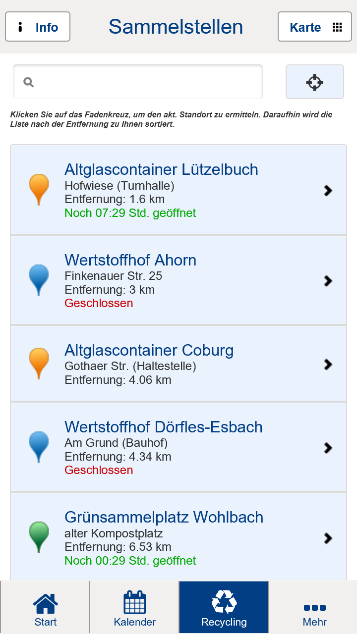 * Standortabfrage zum noch leichteren Finden der nächsten Sammelstelle.