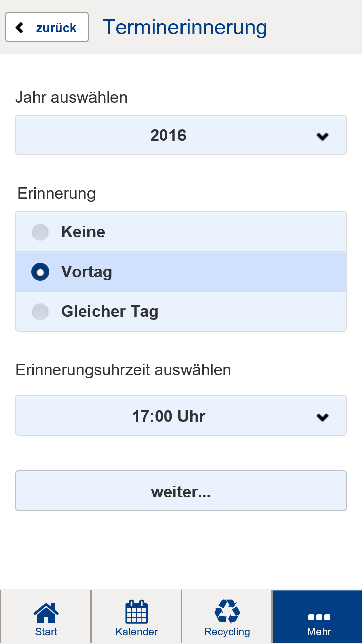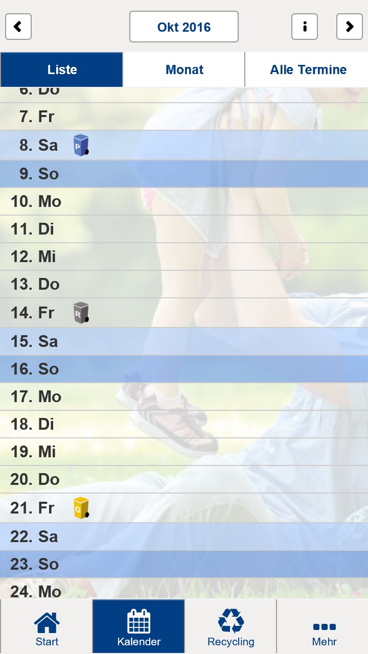 * Vergessen, die Tonne herauszustellen? Mit der Erinnerungsfunktion die Termine für die Leerung in den eigenen Kalender übertragen.