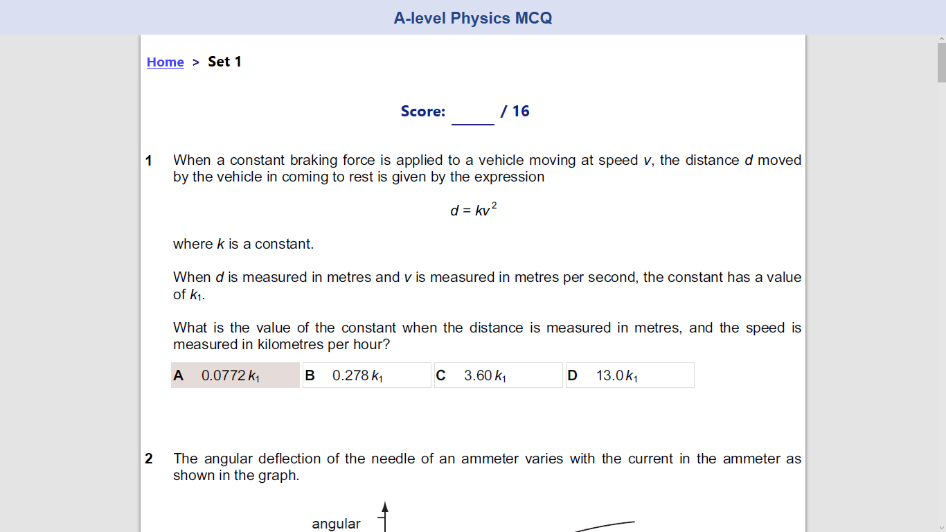 A-level Physics MCQ practice