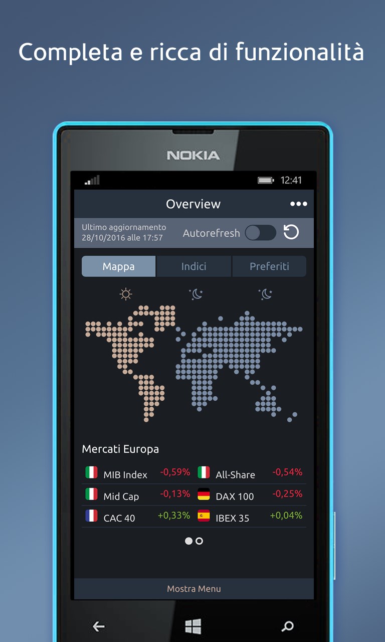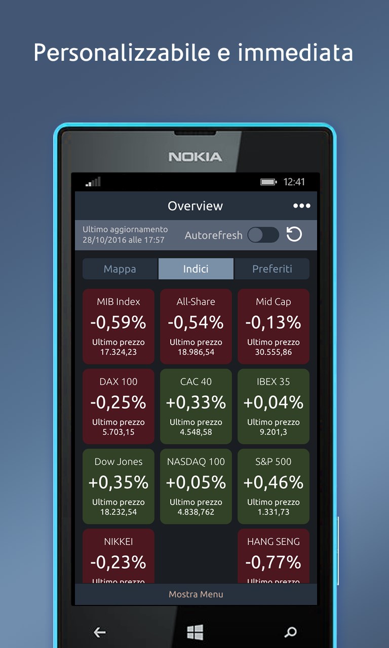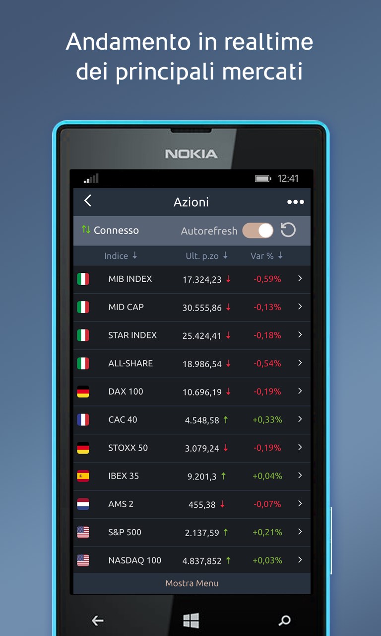 • Seguire in realtime l'andamento dei principali mercati mondiali
