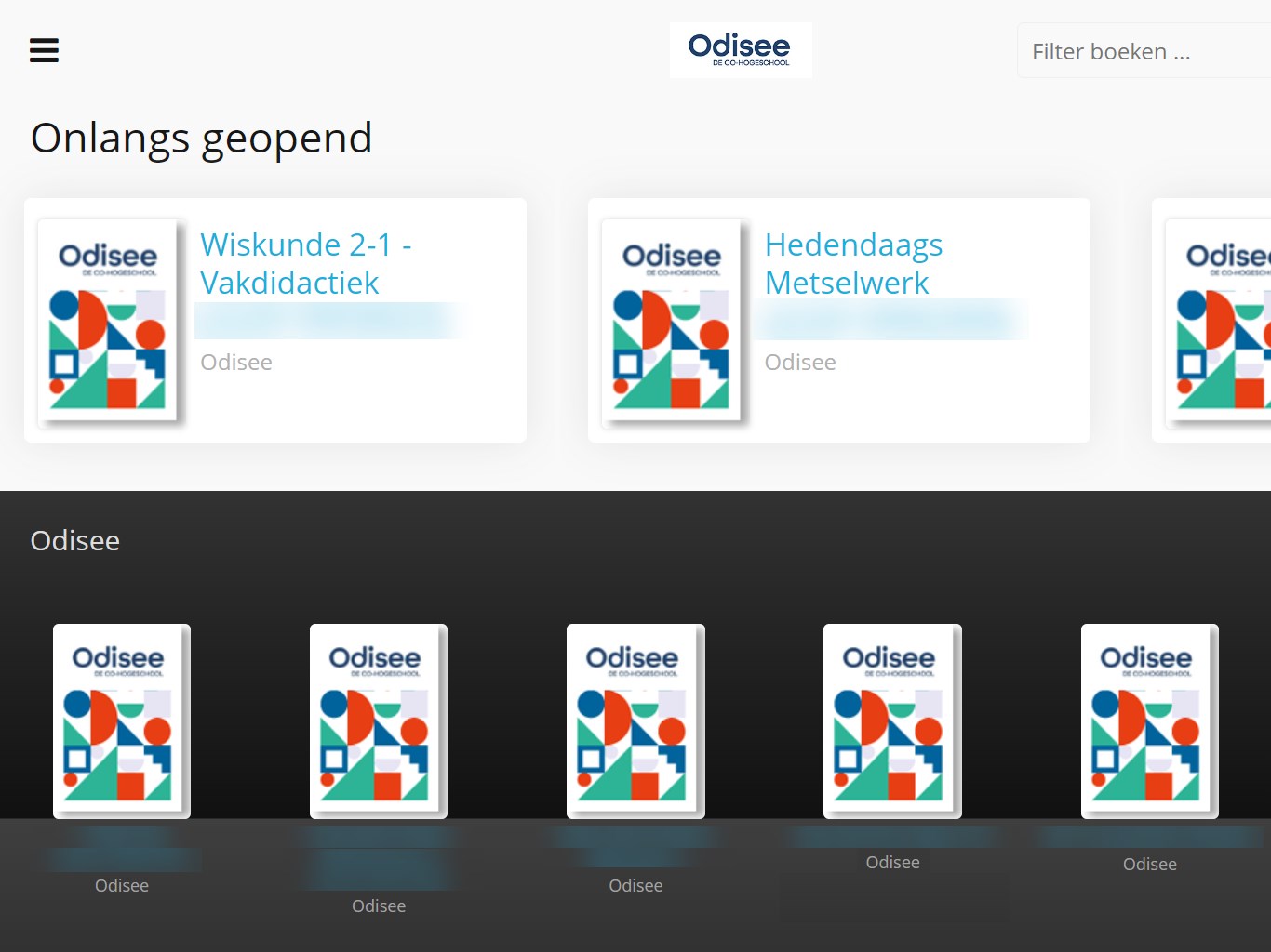 Bekijk online en offline de elektronische versies van jouw verplichte cursusteksten bij Odisee. Deze e-books kunnen door de docenten verrijkt zijn met bijkomende aantekeningen, film- of audiofragmenten, hyperlinks en oefeningen. Je e-books kan je consulteren vanuit de leeromgeving, de toepassing "Mijn Studiemateriaal" en via de native apps voor PC, laptop of tablet.